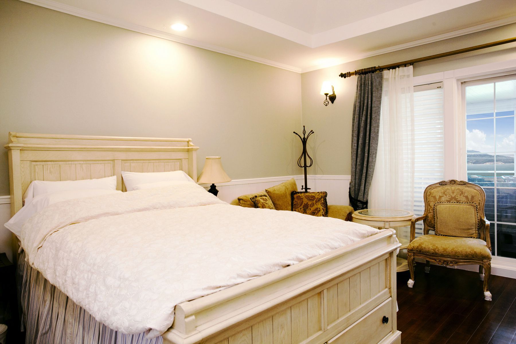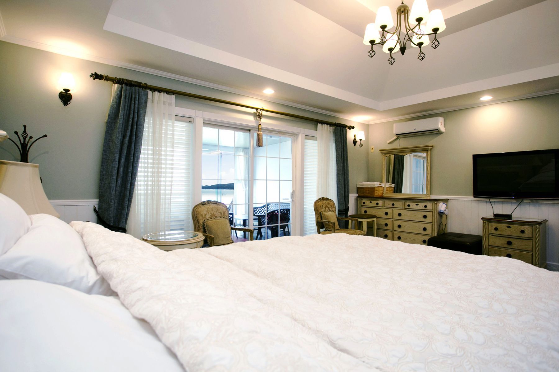 넓은 창에 서해를 가득 담아 편안함이 묻어나는 엔틱한 인테리어가 돋보이는 스위트바실룸.