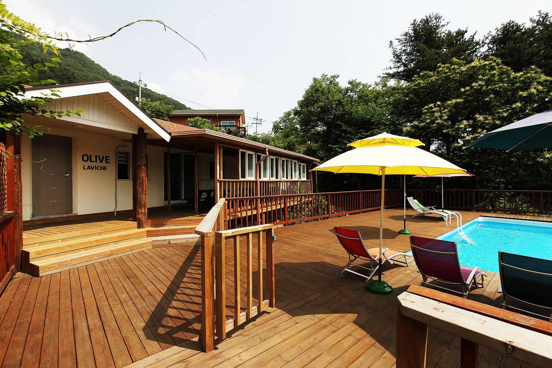 넓고 깨끗한 수영장이마련되어있어 멀리갈필요없이 더운여름은 시원하게 즐기실 수도 있고,