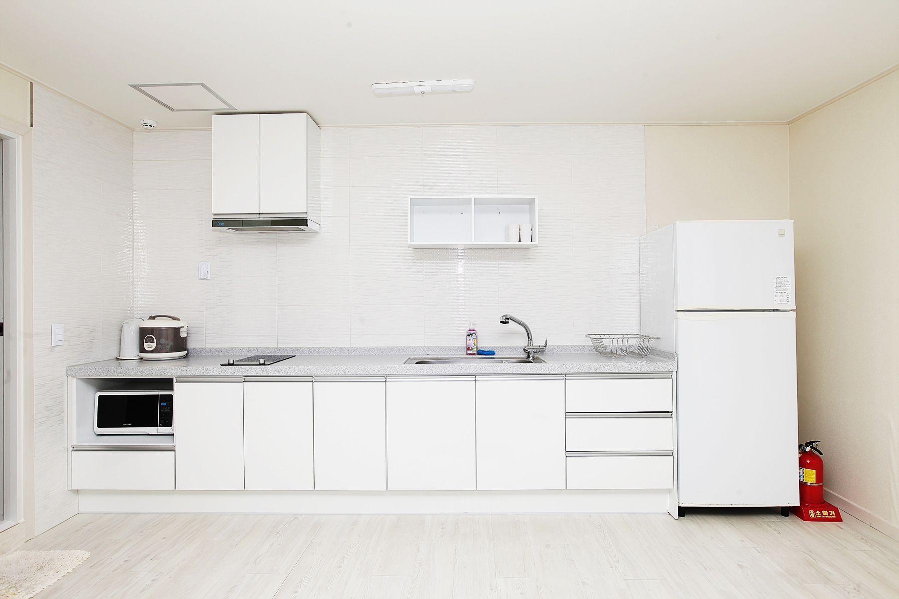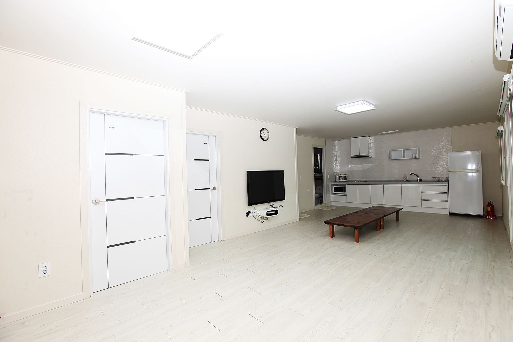 기준인원 8명 최대 15명이 머물수 있으며 깨끗한 화이트톤의 인테리어가 돋보이는 객실입니다.