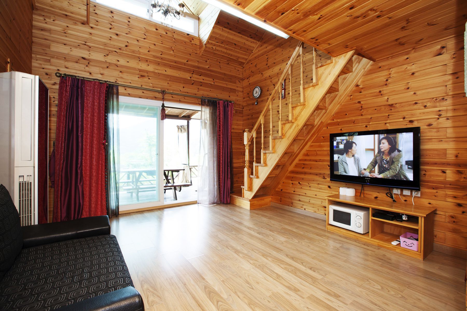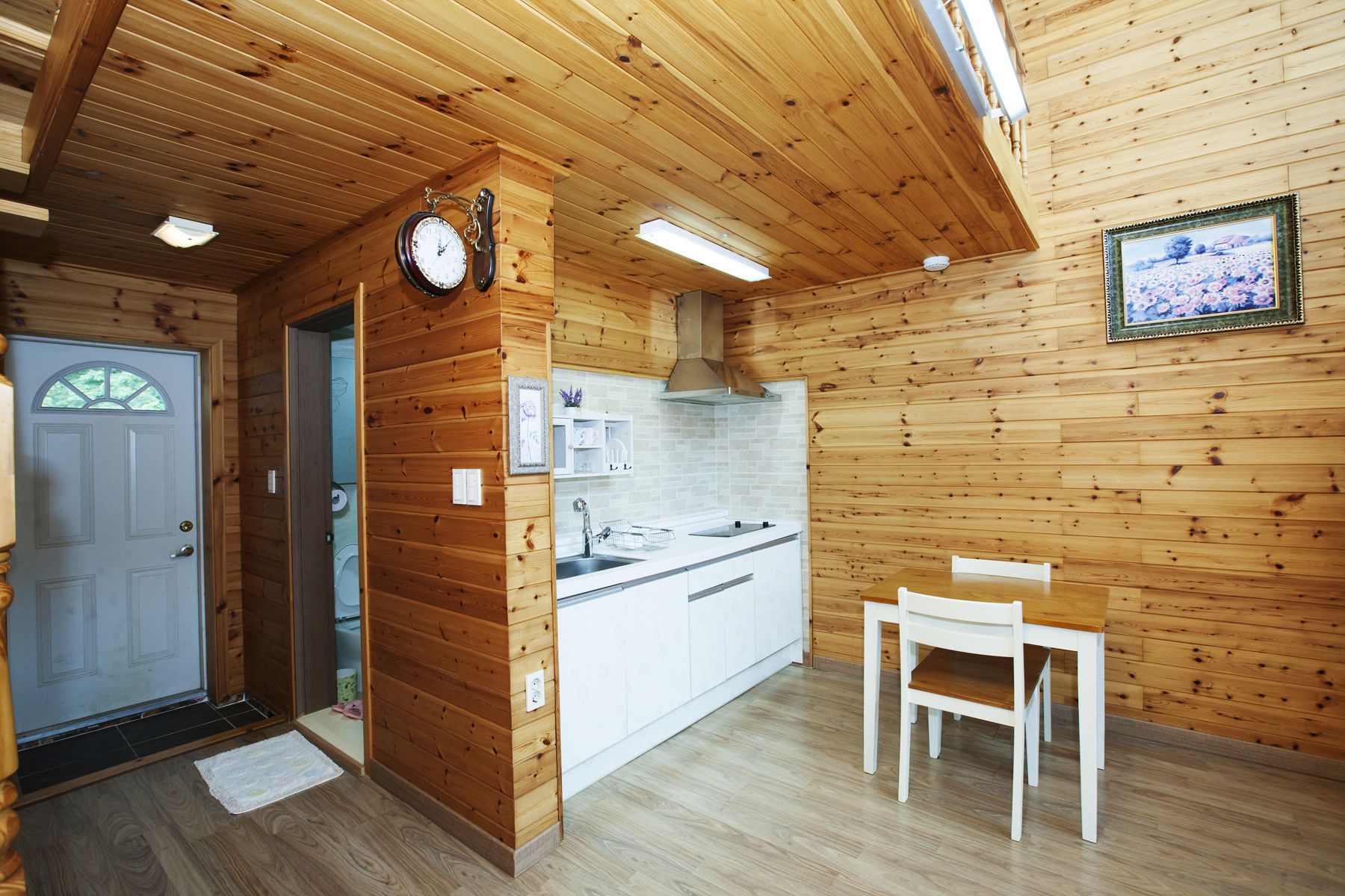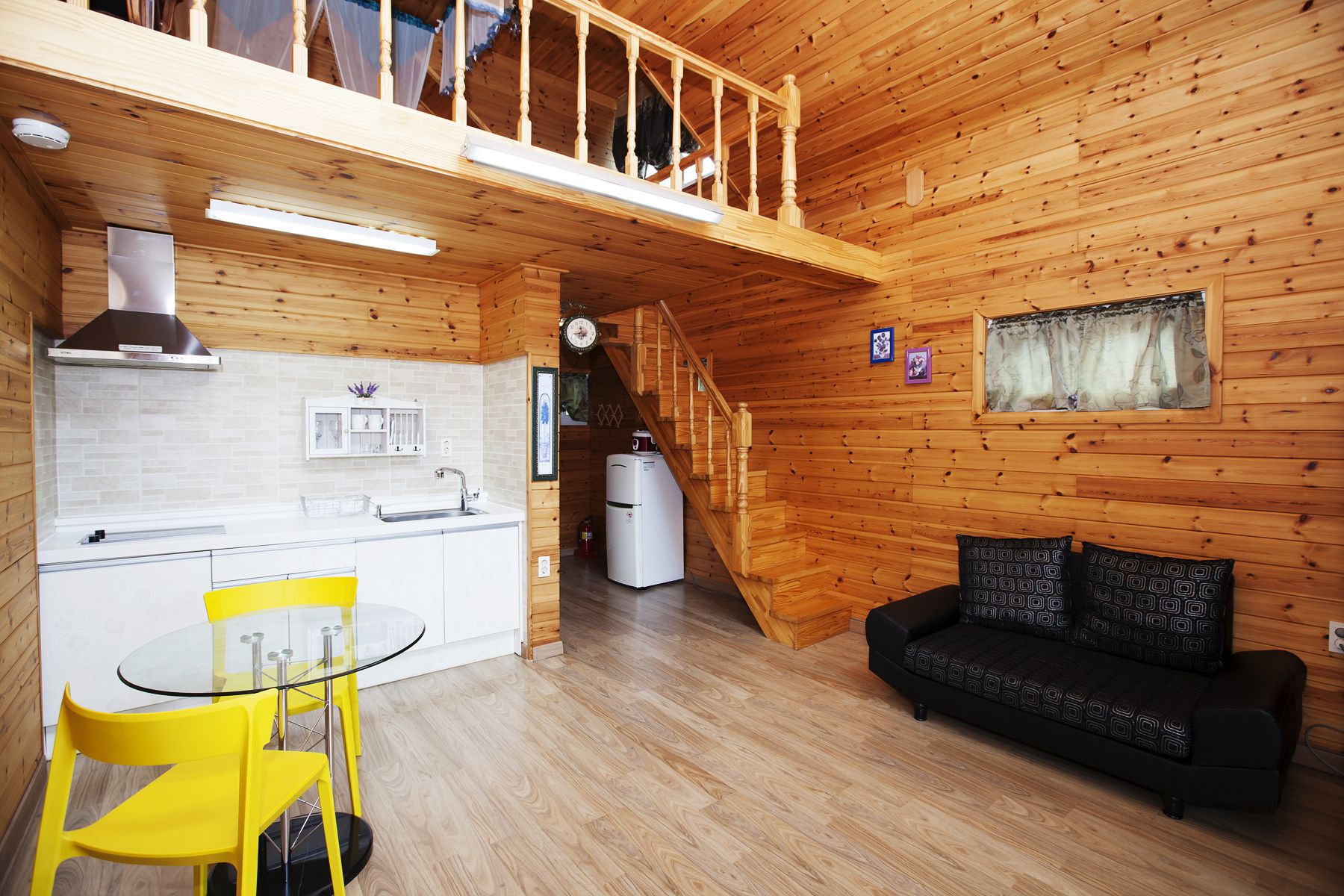 통나무펜션답게 객실내부는 아늑하고 따스한 느낌의 목조스타일로 꾸며져 있으며