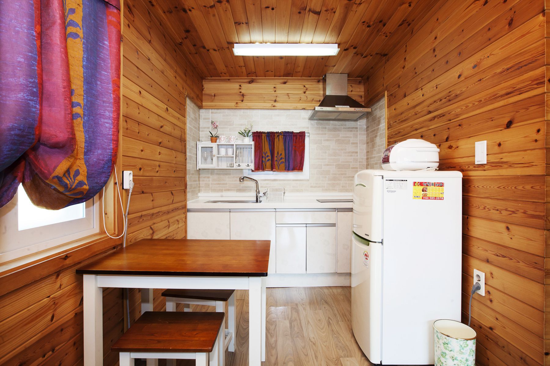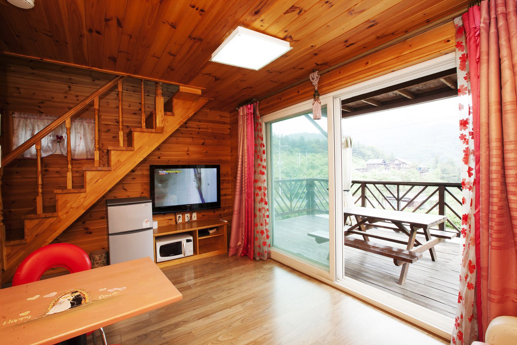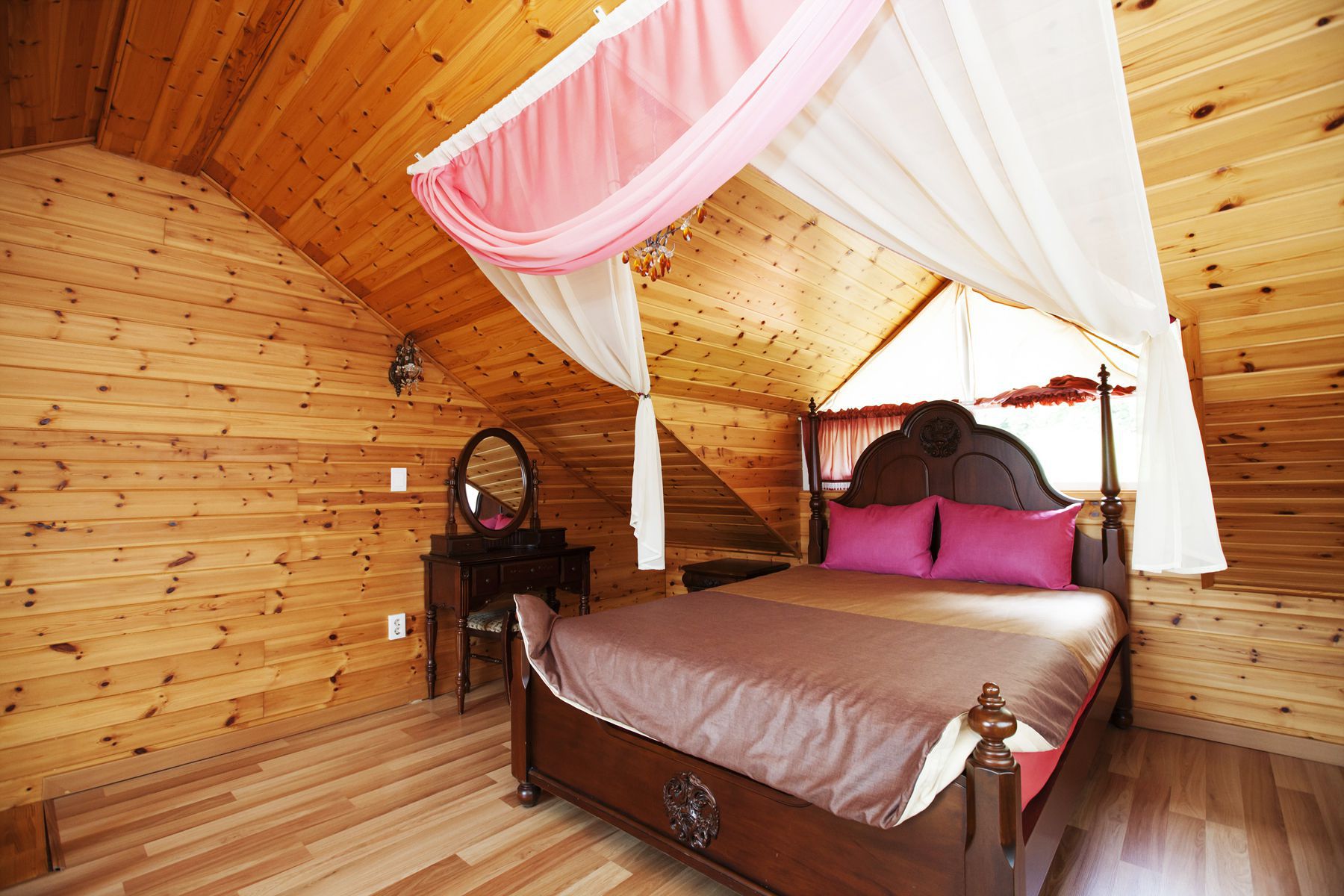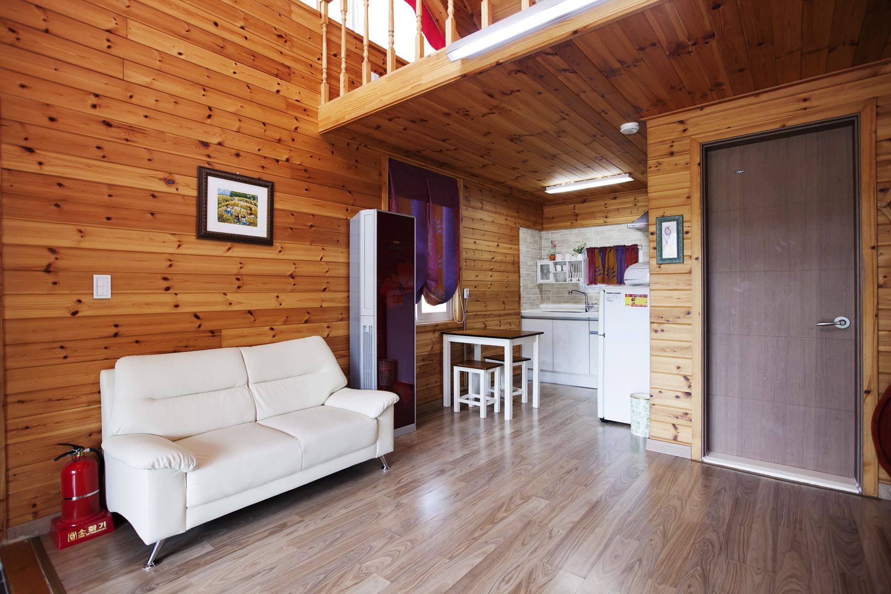 통나무펜션답게 객실내부는 아늑하고 따스한 느낌의 목조스타일로 꾸며져 있으며