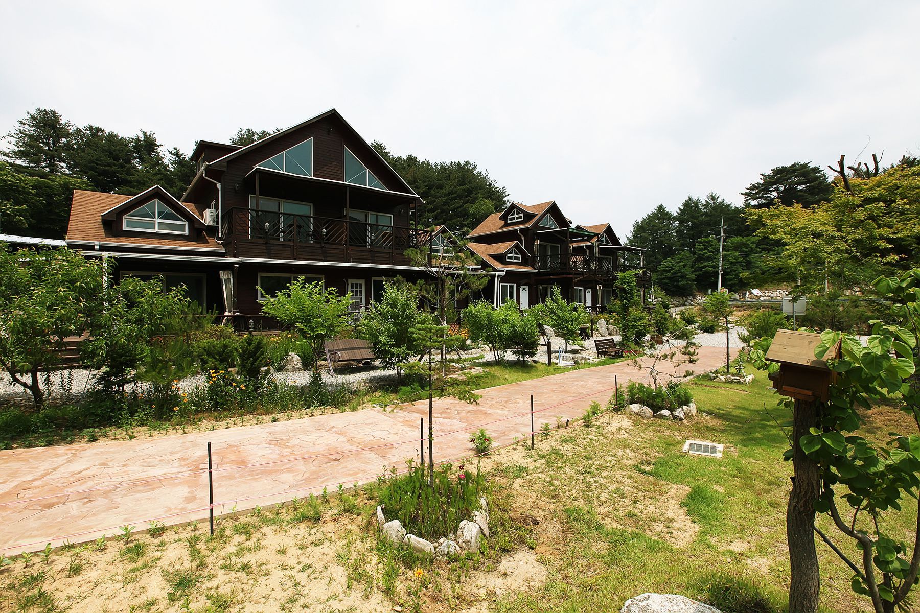 펜션뒷편은 아름드리 잣나무숲이 우거져있으며 펜션앞으로는 넓고 푸른 정원을 만날 수 있는