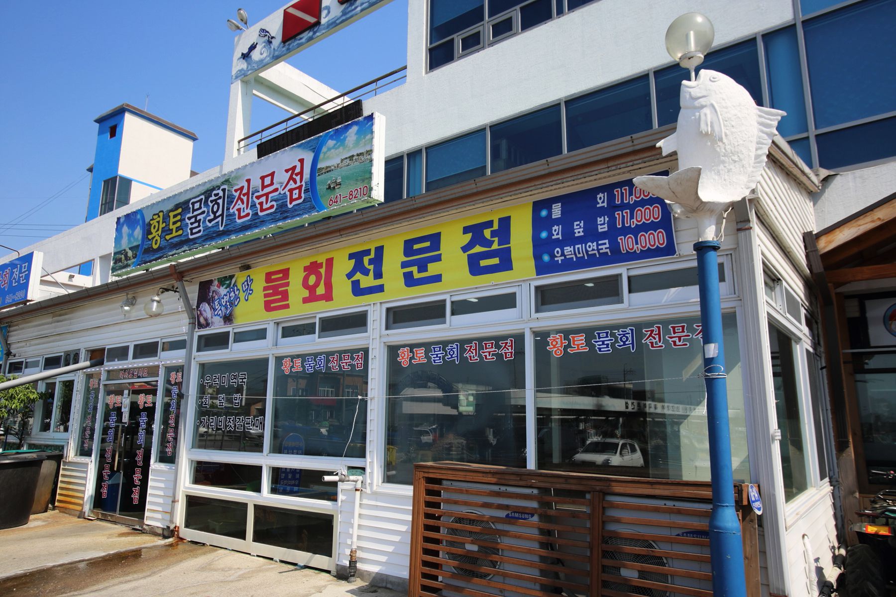 강릉시 사천면에 위치한 물회전문점 '황토물회전문점'입니다.
