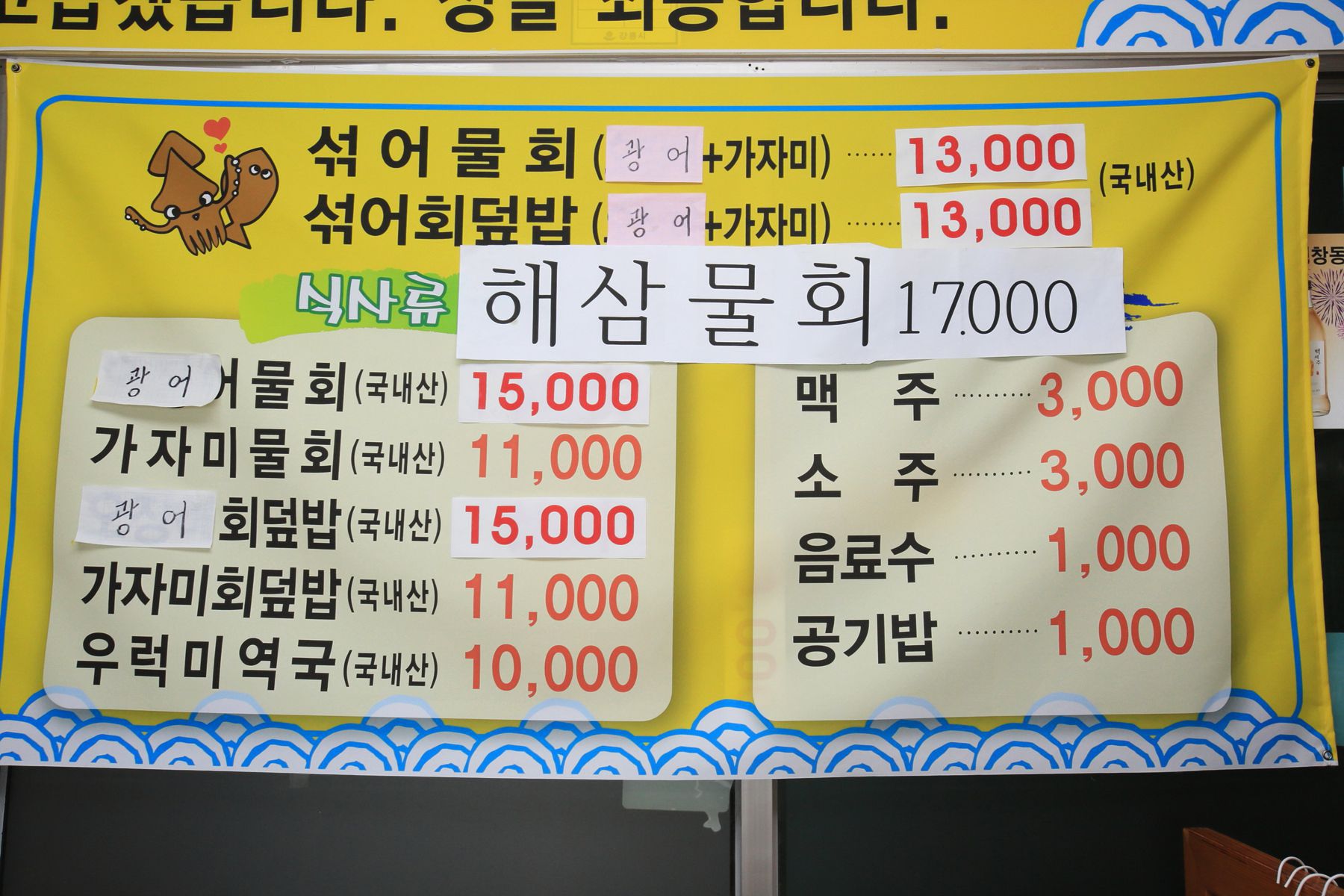 또한 물회값을 올릴 수 없어서 전복값인상으로 인해 전복을 제외시켰지만
