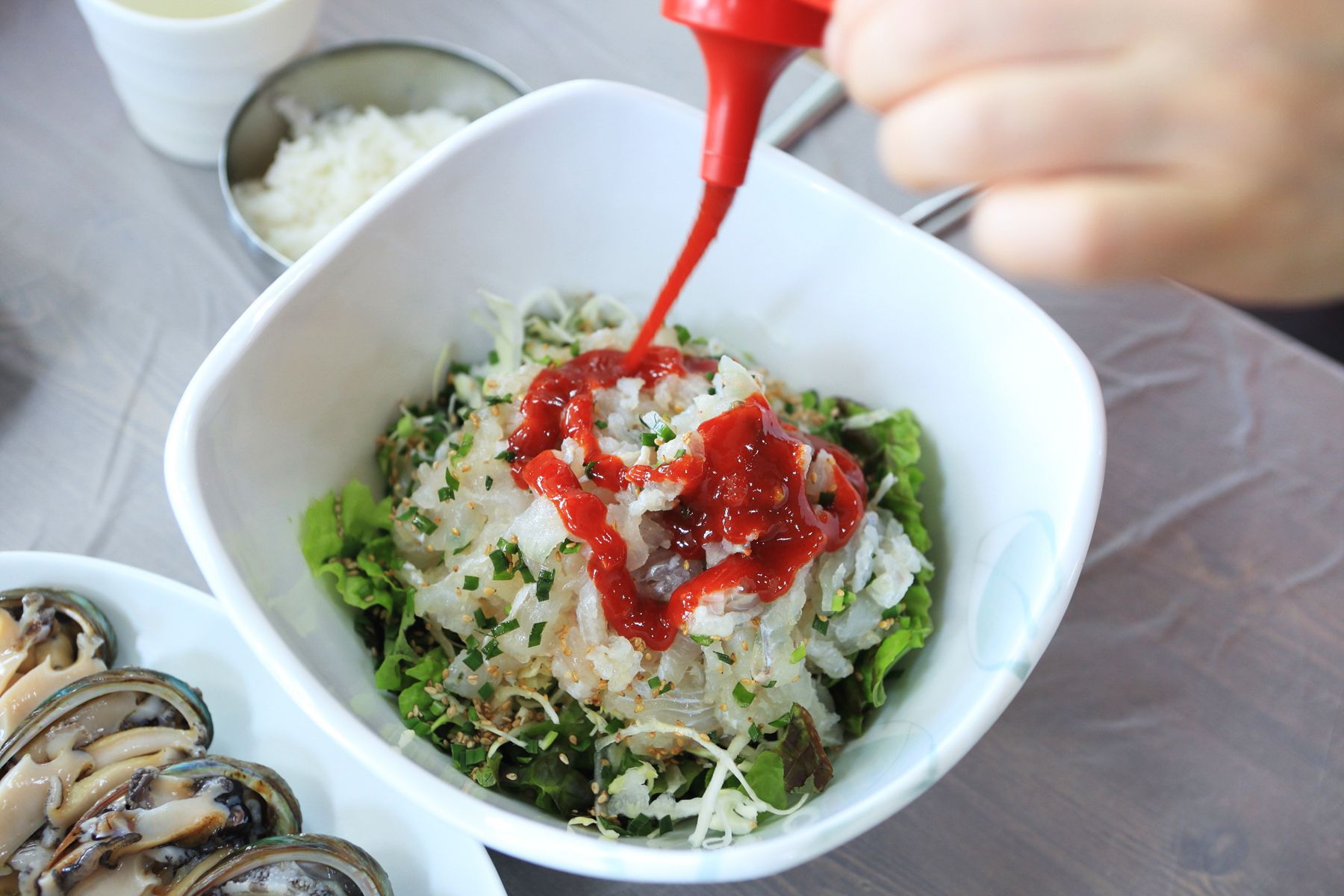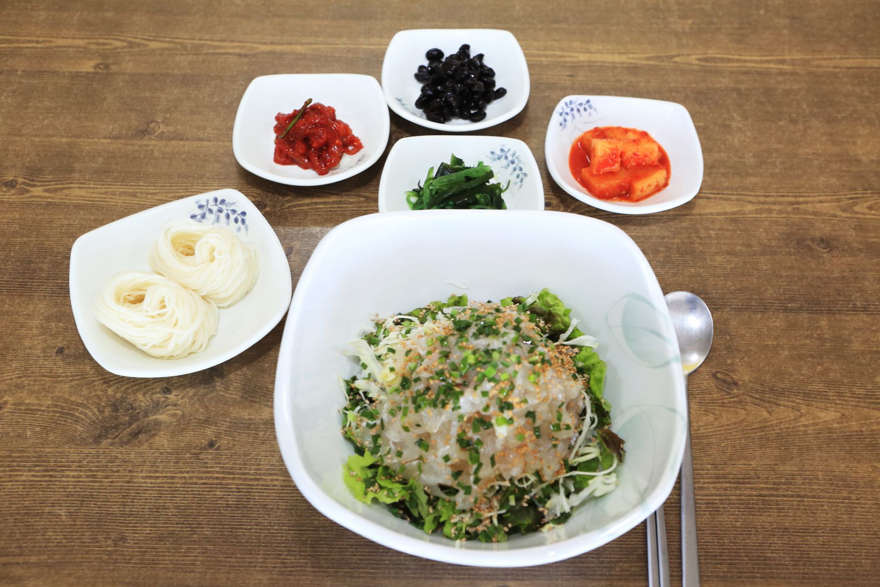 싱싱한 회와 신선한야채,새콤한 양념장 3박자가 아주 잘 어울리는 음식이며 한끼 식사로도 부족함없는 메뉴입니다.