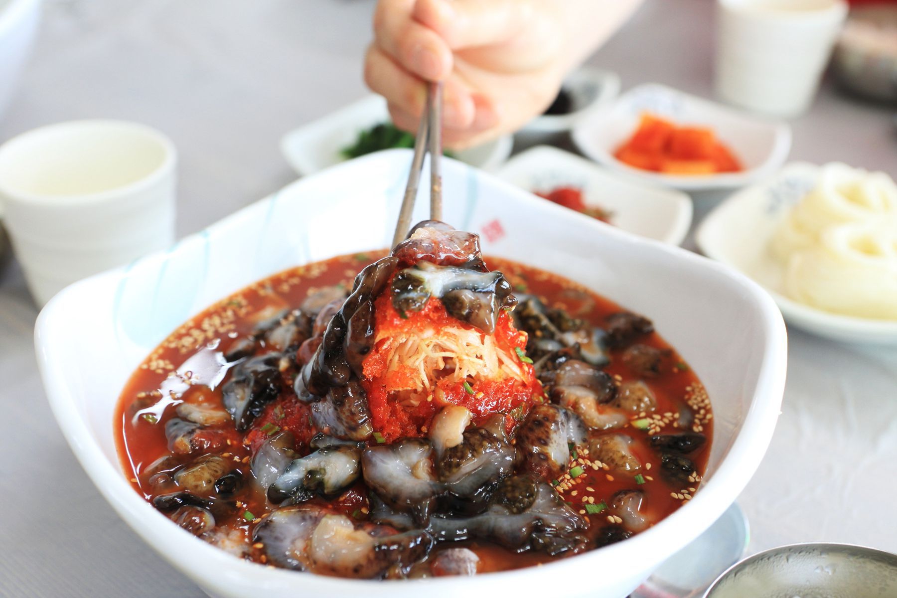 바다향을 깊이 느낄 수 있는 오돌돌 씹는맛이 일품인 해삼물회!