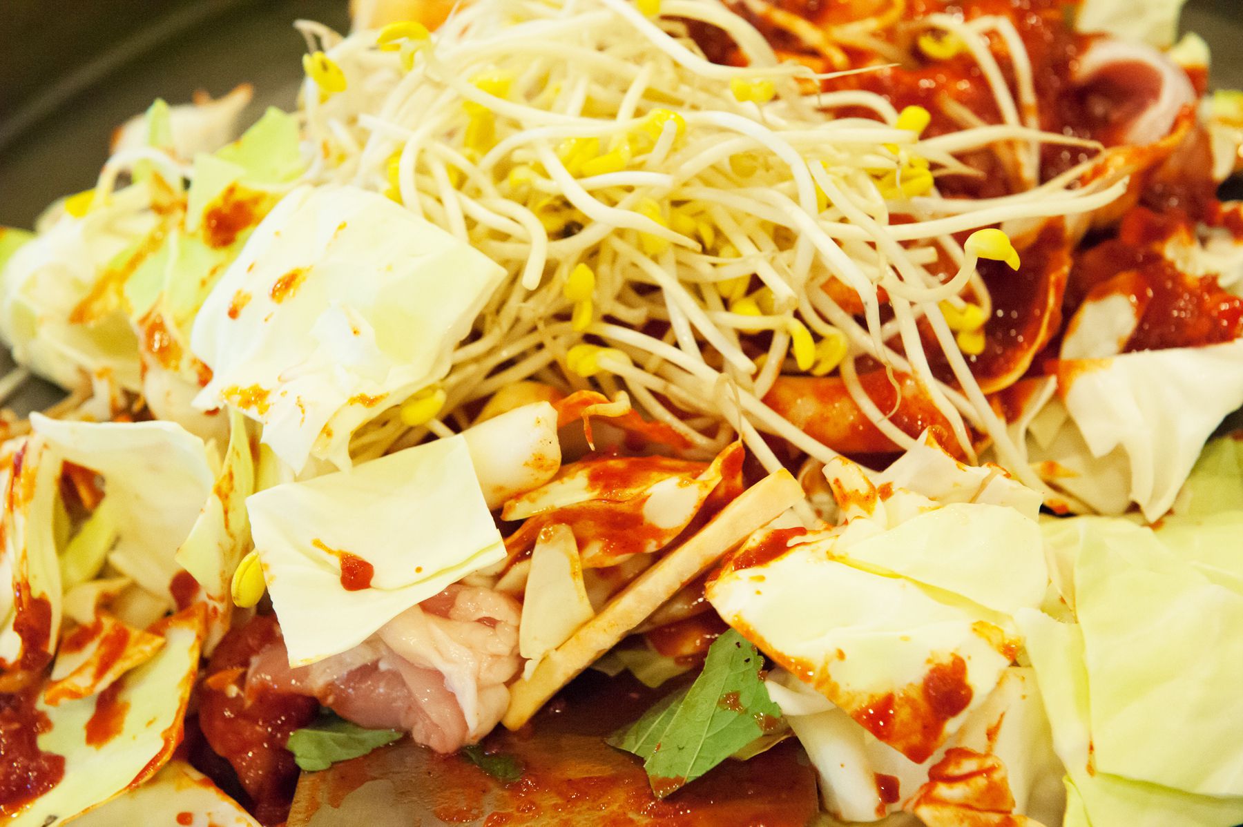 신선한 양배추와 콩나물이 함께 어울려진 닭갈비를 만나보실차례인데요,