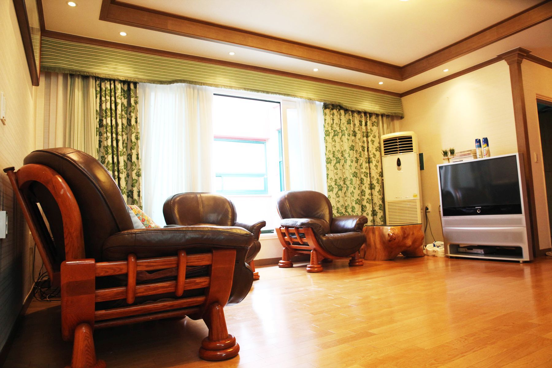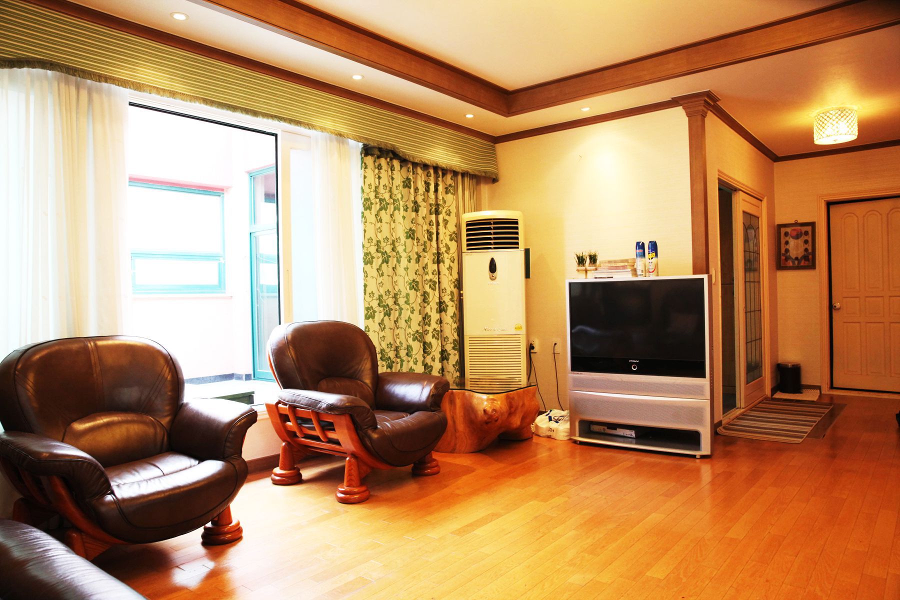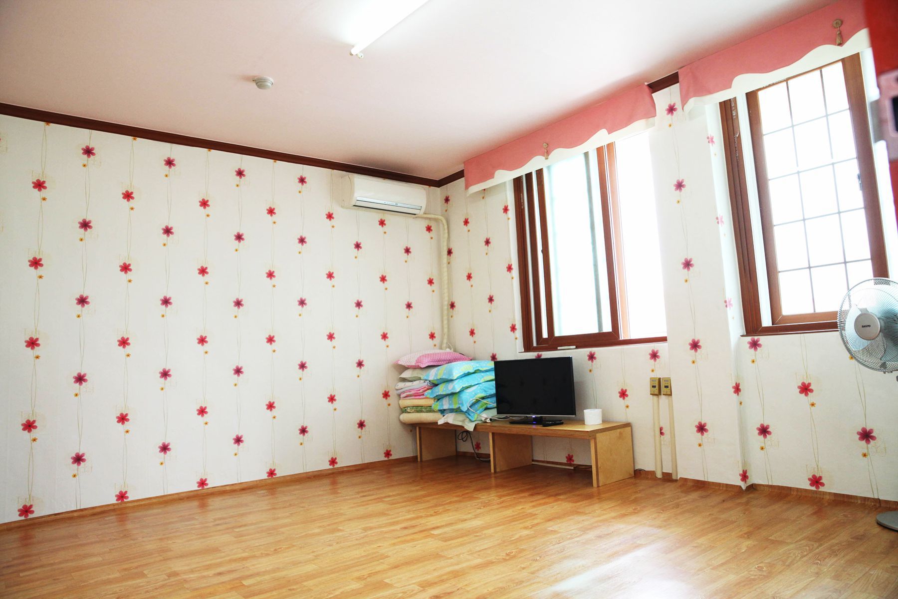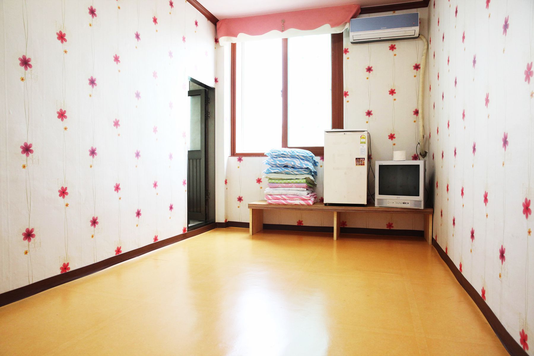 객실 또한 깨끗하게 청소가 되어 있고 에어컨, TV, 냉장고 등 이용에 편리한 물품과 가전이 구비되어 있으며