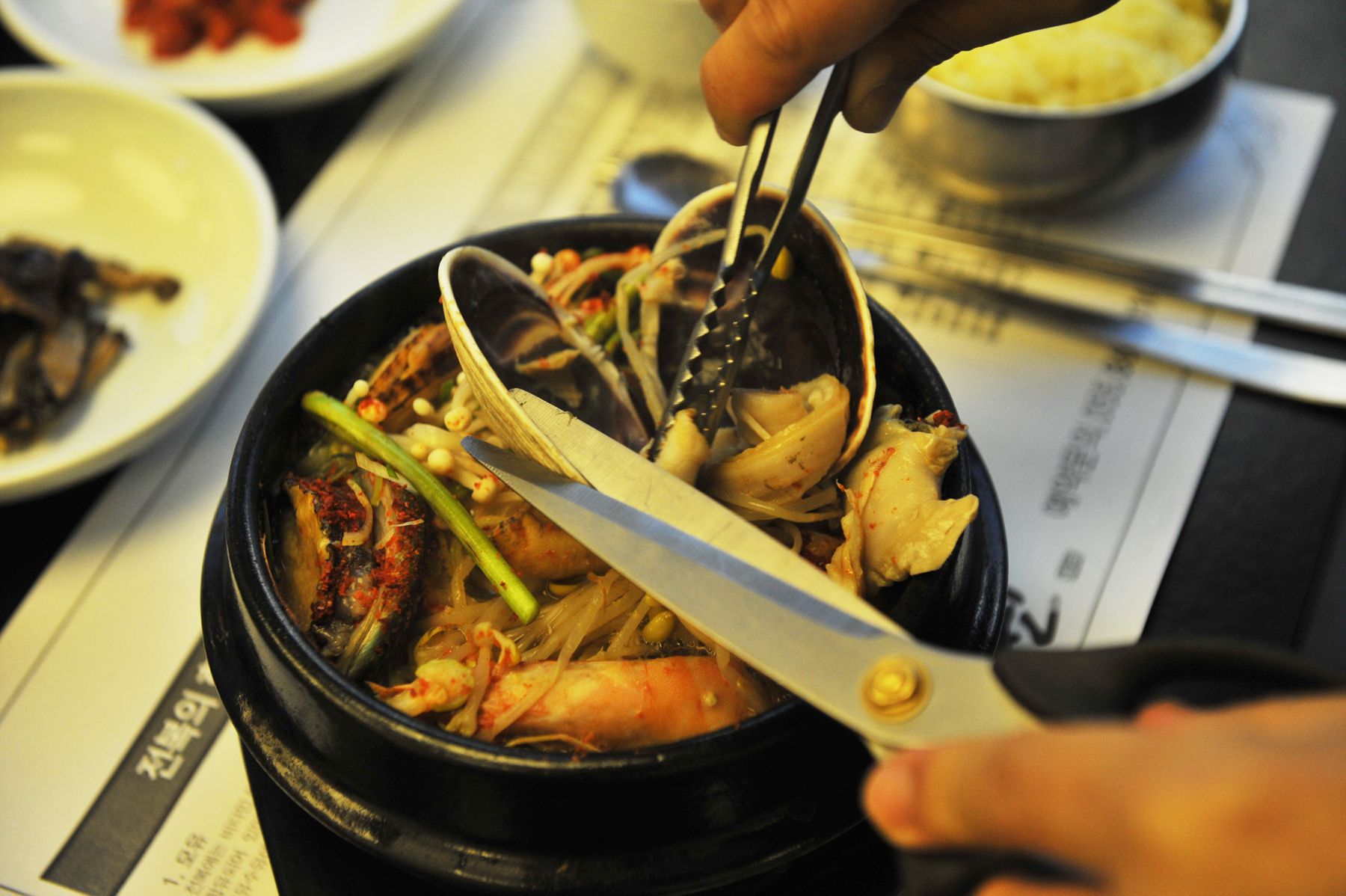 뚝배기 안에 푸짐하게 해물이 들어가 있어 보기만해도 푸짐하고 좋습니다.