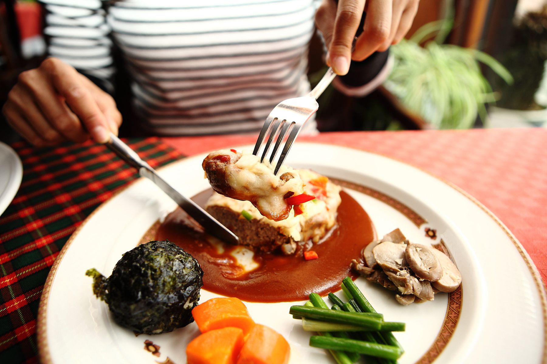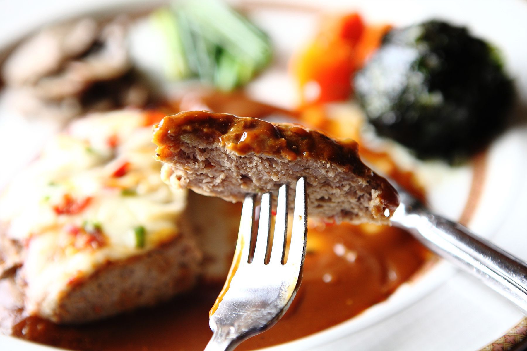 부드럽고 식감과 풍미가 좋은 함박스테이크도 인기 많은 메뉴입니다.