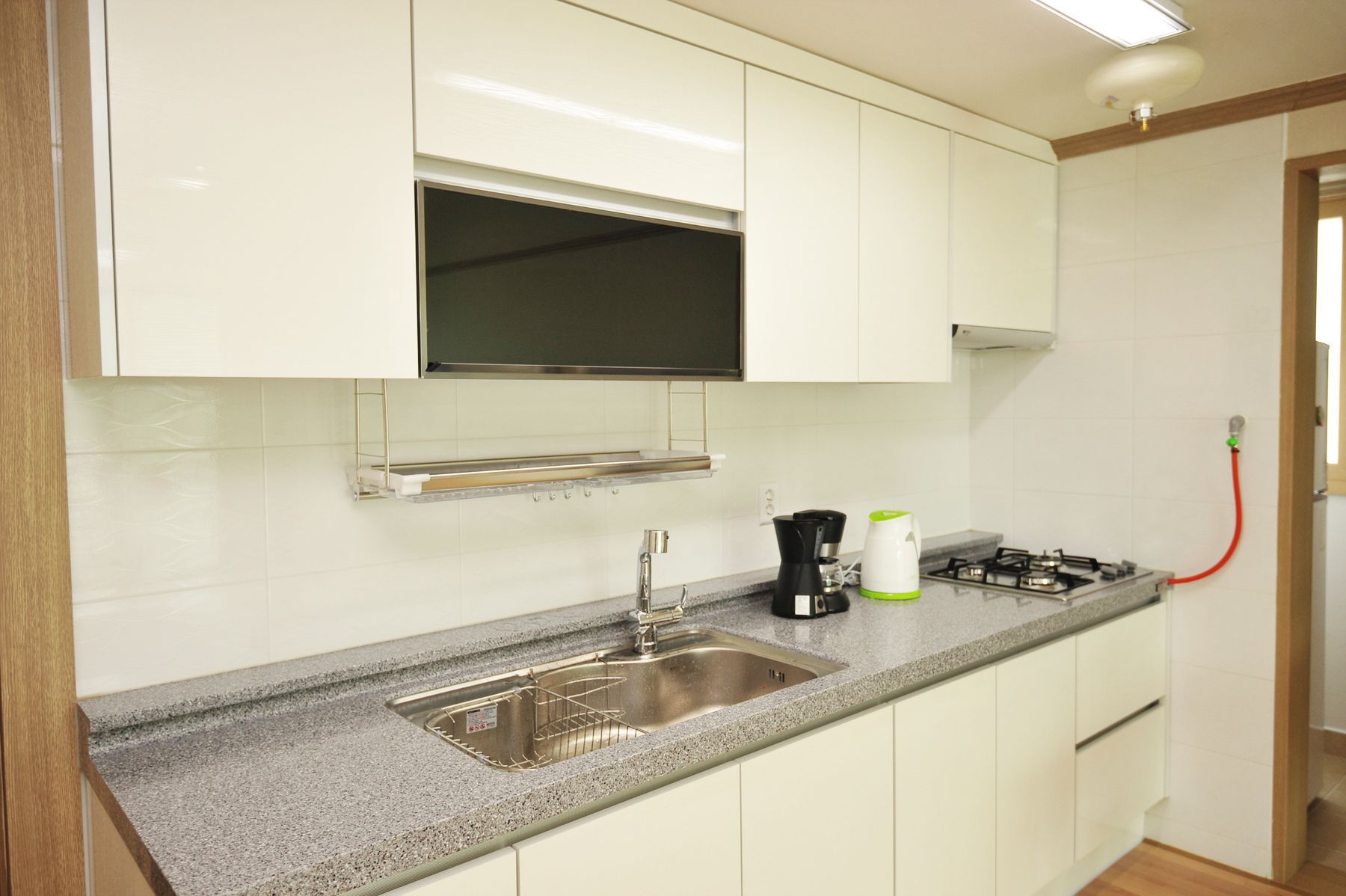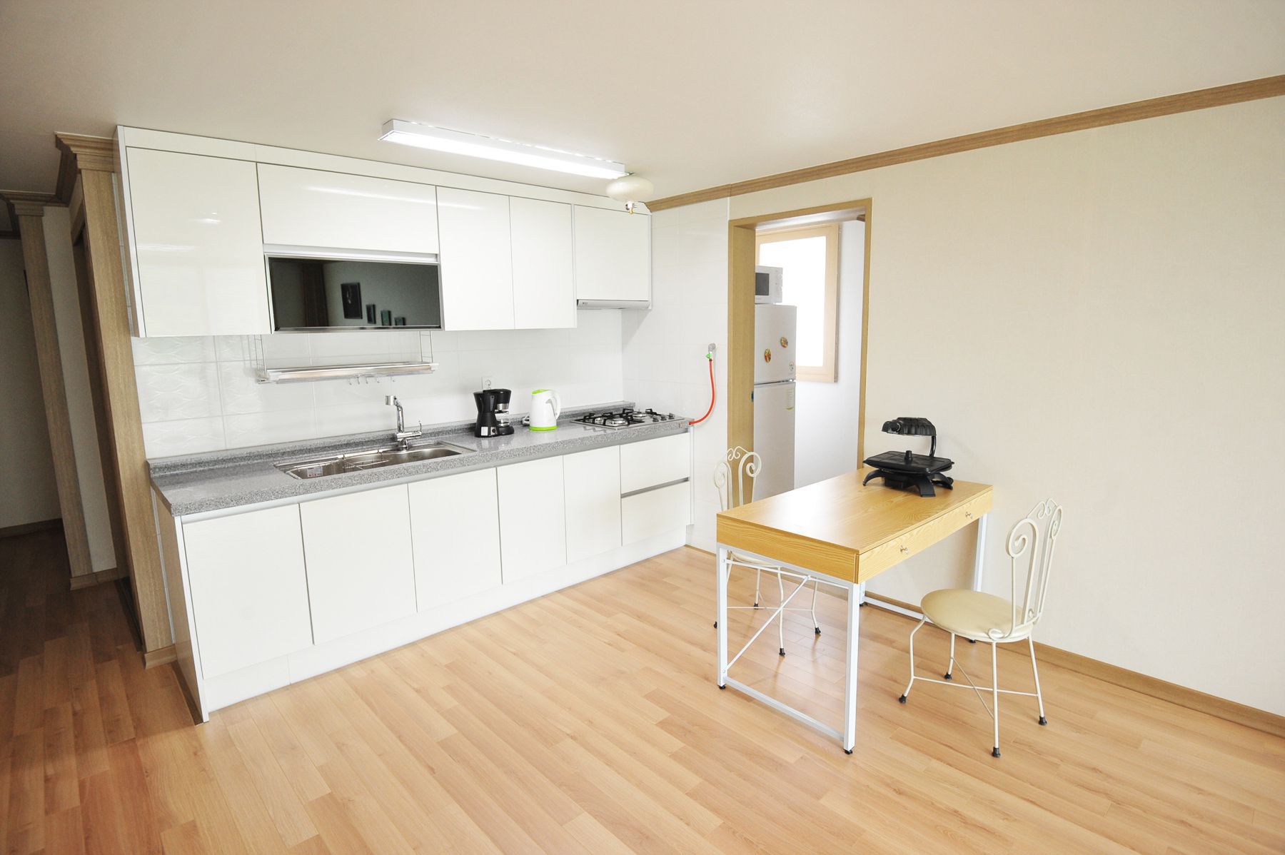 깔끔한 거실과 트인 동선으로 더욱 넓게 느껴지는 부엌도 불편함 없이 여행을 하시는 동안 맛있는 요리를 해 드실 수 있도록 마련되어 있습니다.