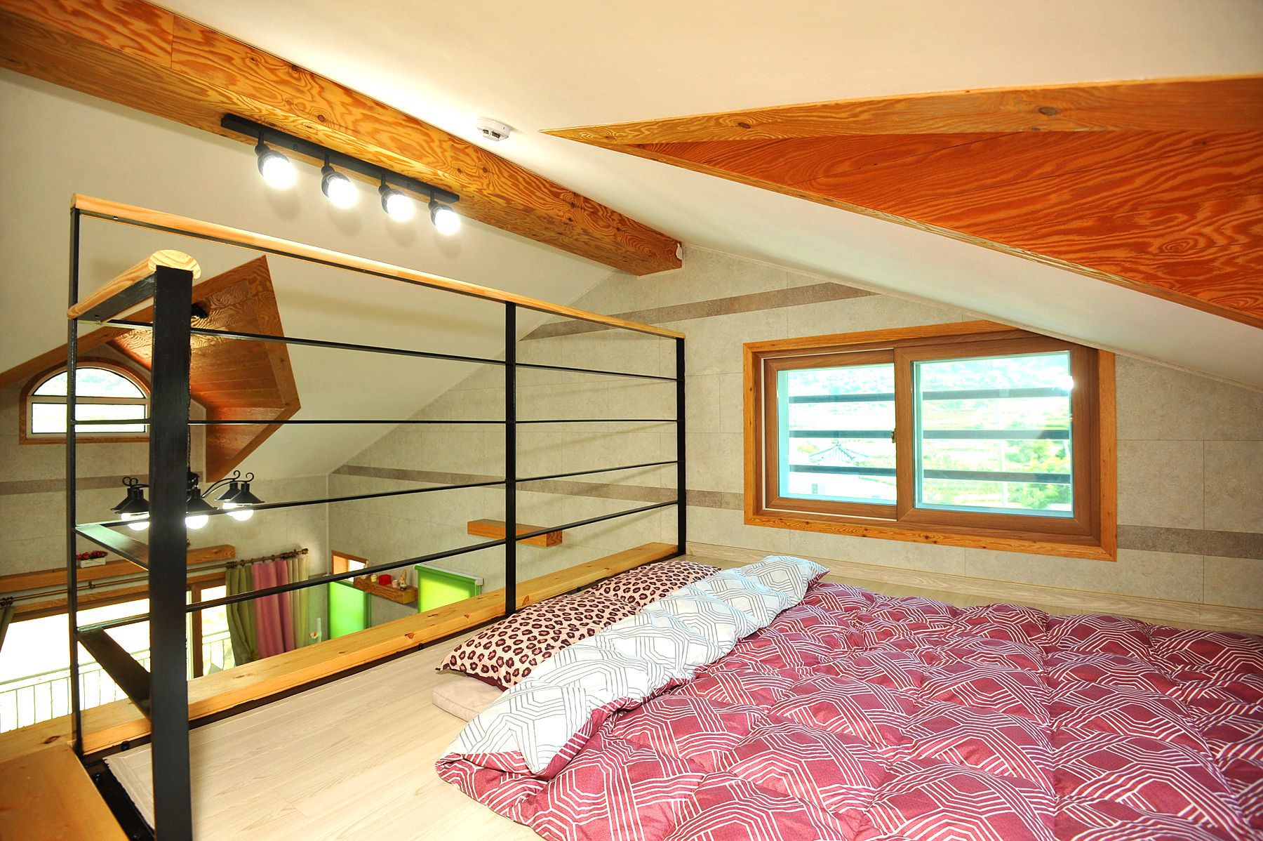 윗층에는 아늑하고 포근함이 느껴져 숙면을 취할수 있는 공간입니다.