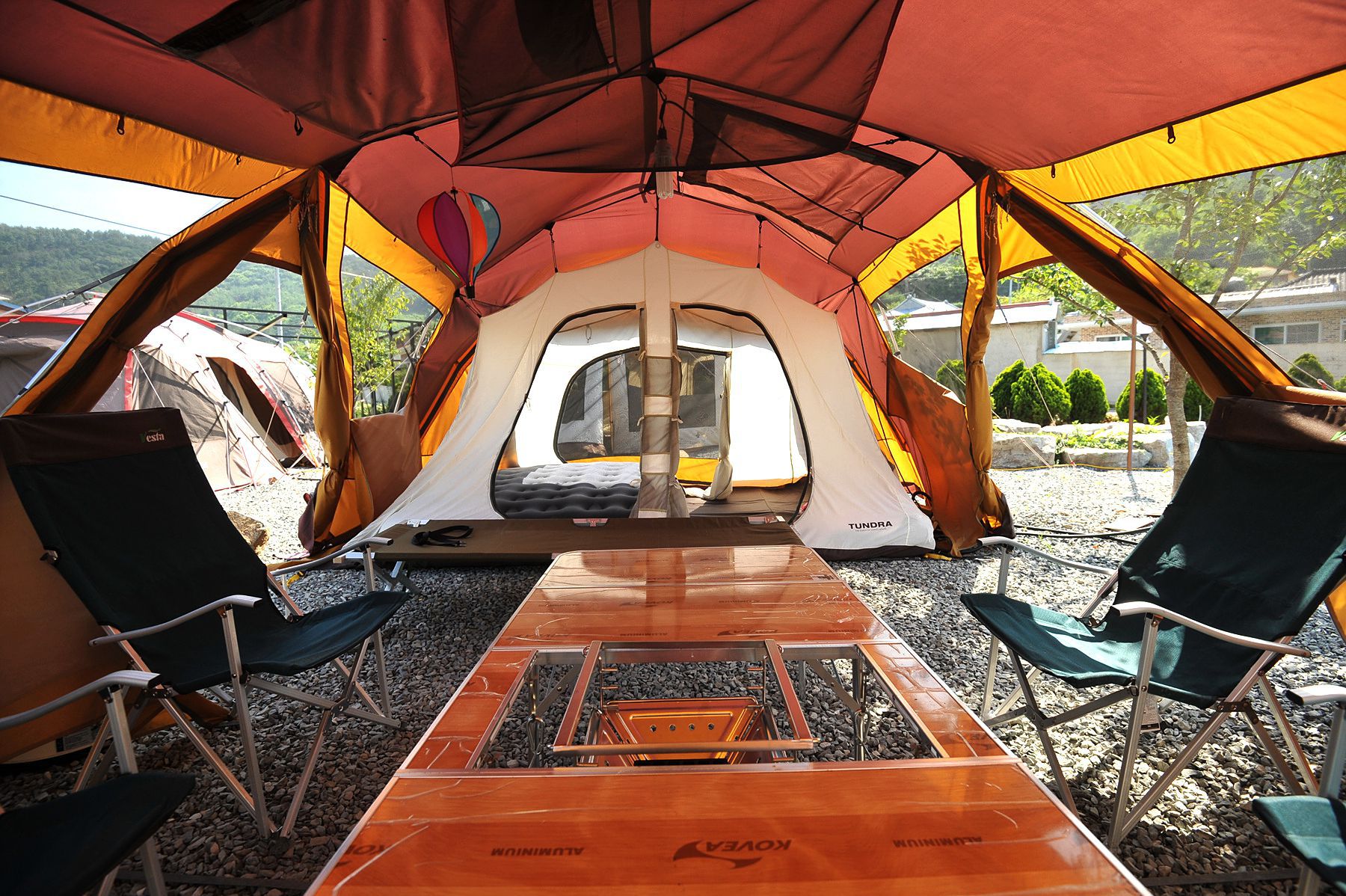텐트는 4인용텐트 와 8인용 바베큐 텐트가 준비되어 있습니다.