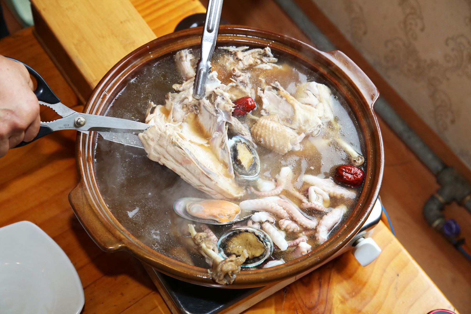 따뜻한 성질인 닭과 차가운 성질인 해산물과의 만남으로 더욱 영양가득하고 궁합 또한 잘 맞기때문에 꼭 먹어줘야하는 보양식입니다