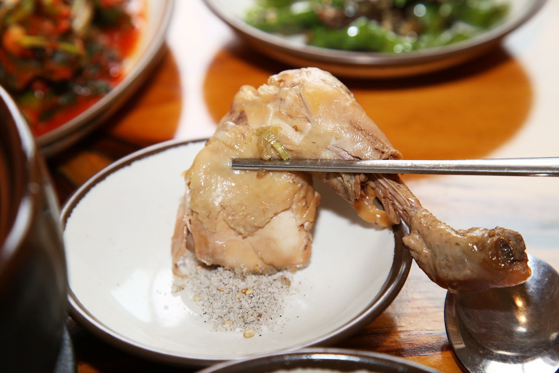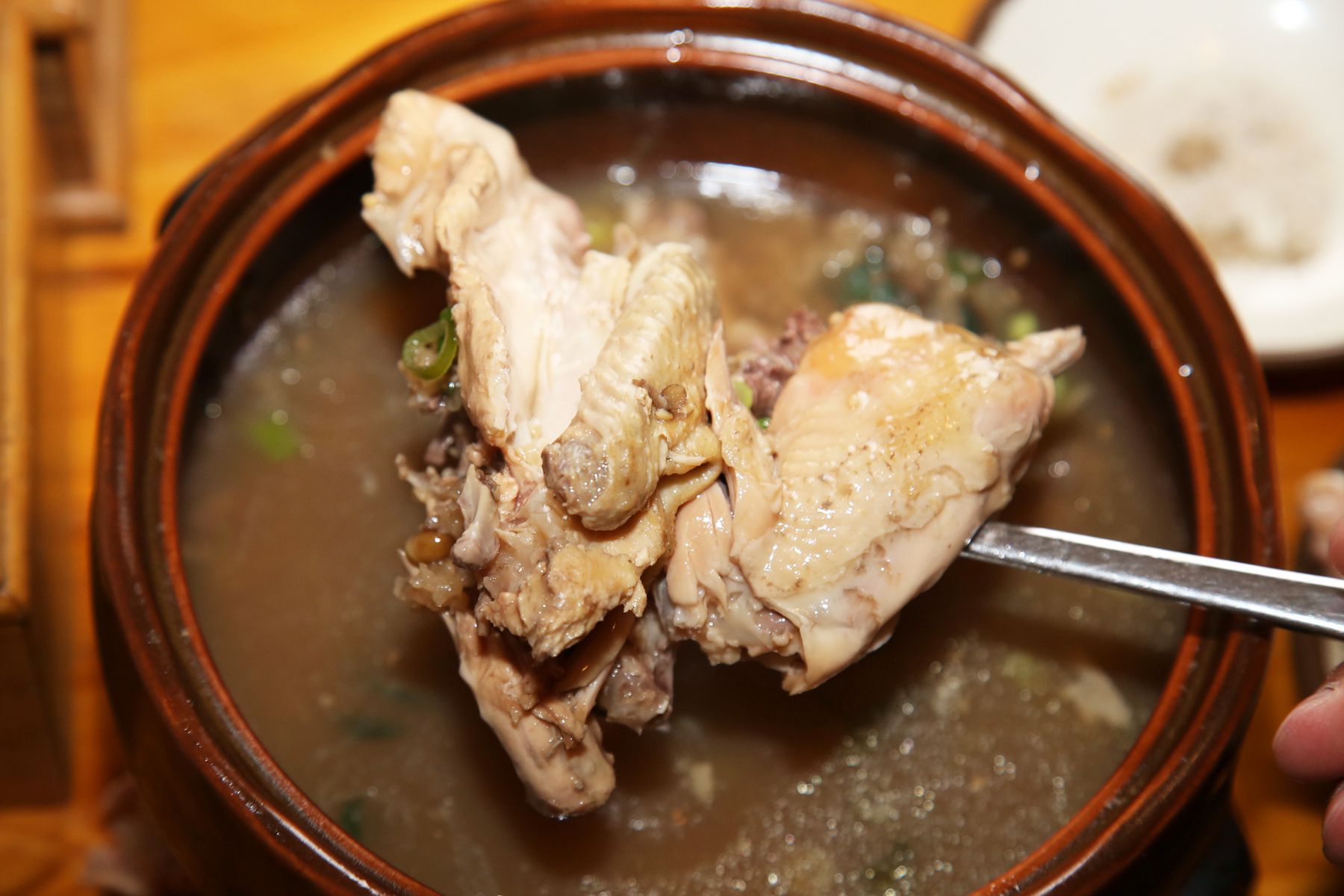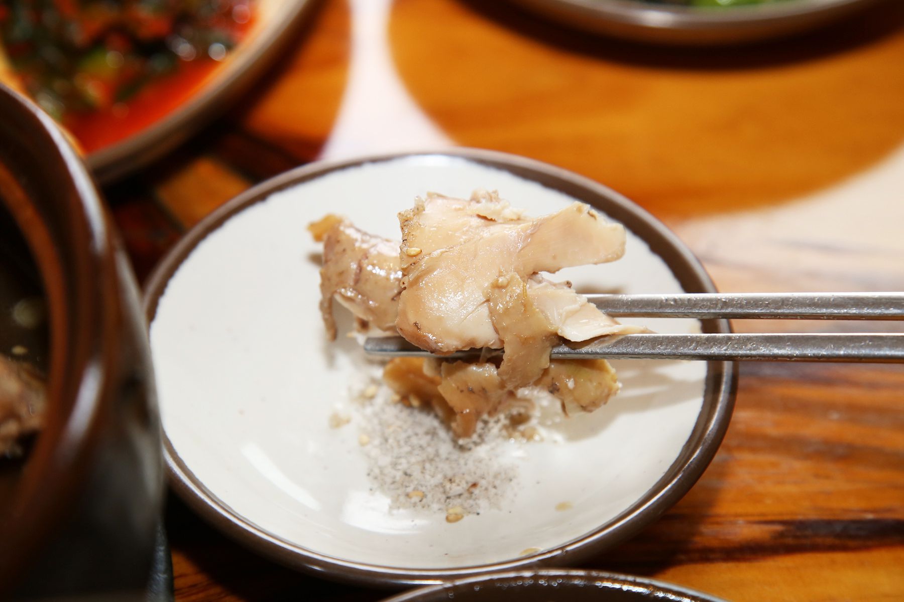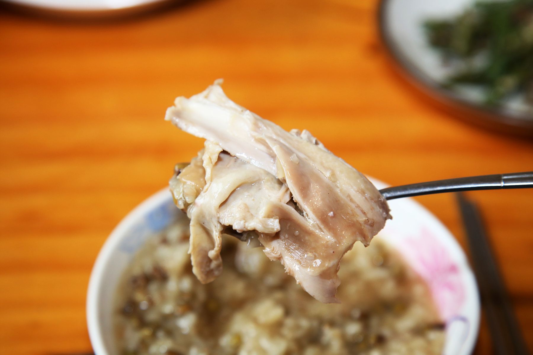 정성을 다해 푹~삶아졌기때문에 닭고기는 부드럽고 야들야들하며