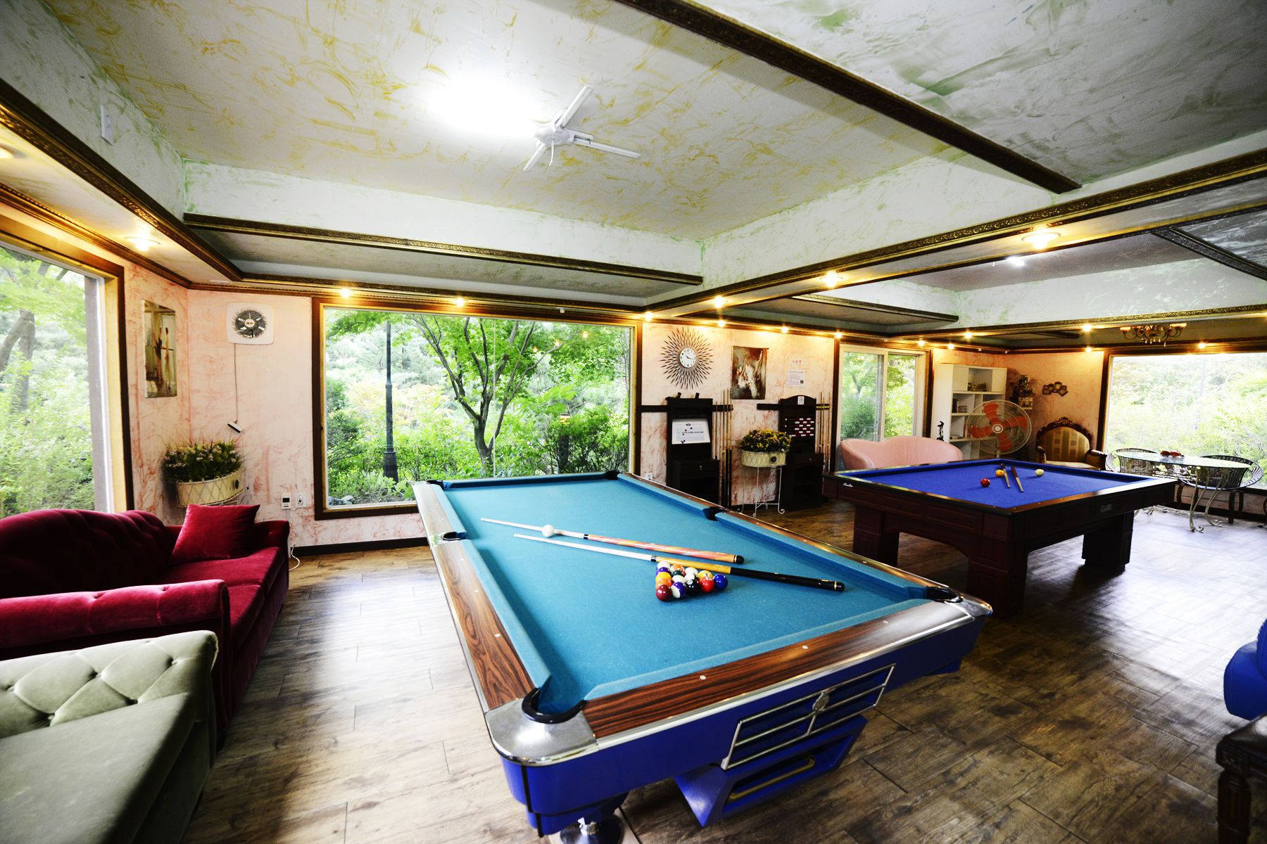다양하게 즐길수 있는 당구대,수영장, 탁구장이 마련되어 있어서 시간 가는줄 모르고