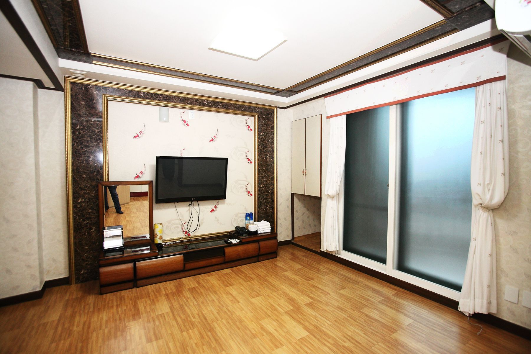 골든패밀리방은 기준4명에 최대인원 8명이 이용할수 있고 TV,침대,식탁,에어컨,냉장고,가스렌지,