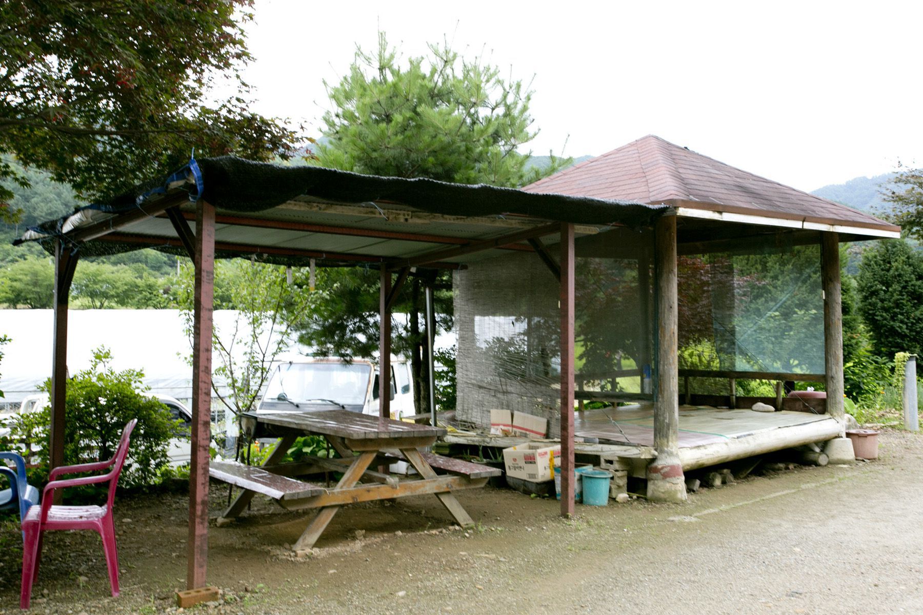 민박 뒤에는 냇가가 있고 넓은 마당과 원두막이 마련되어 있어