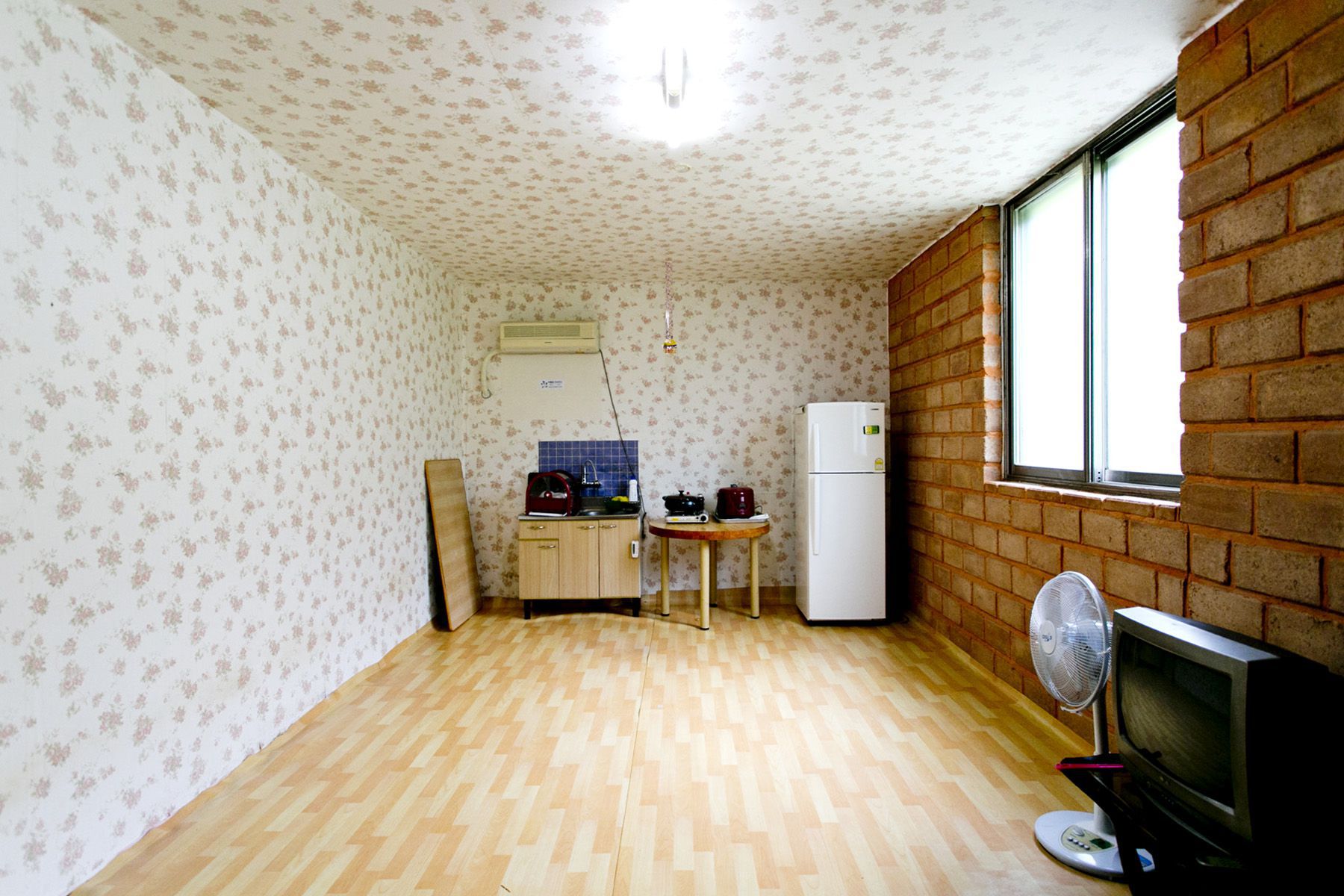 황토벽돌로 둘러싸인 '1층1호' 객실입니다.