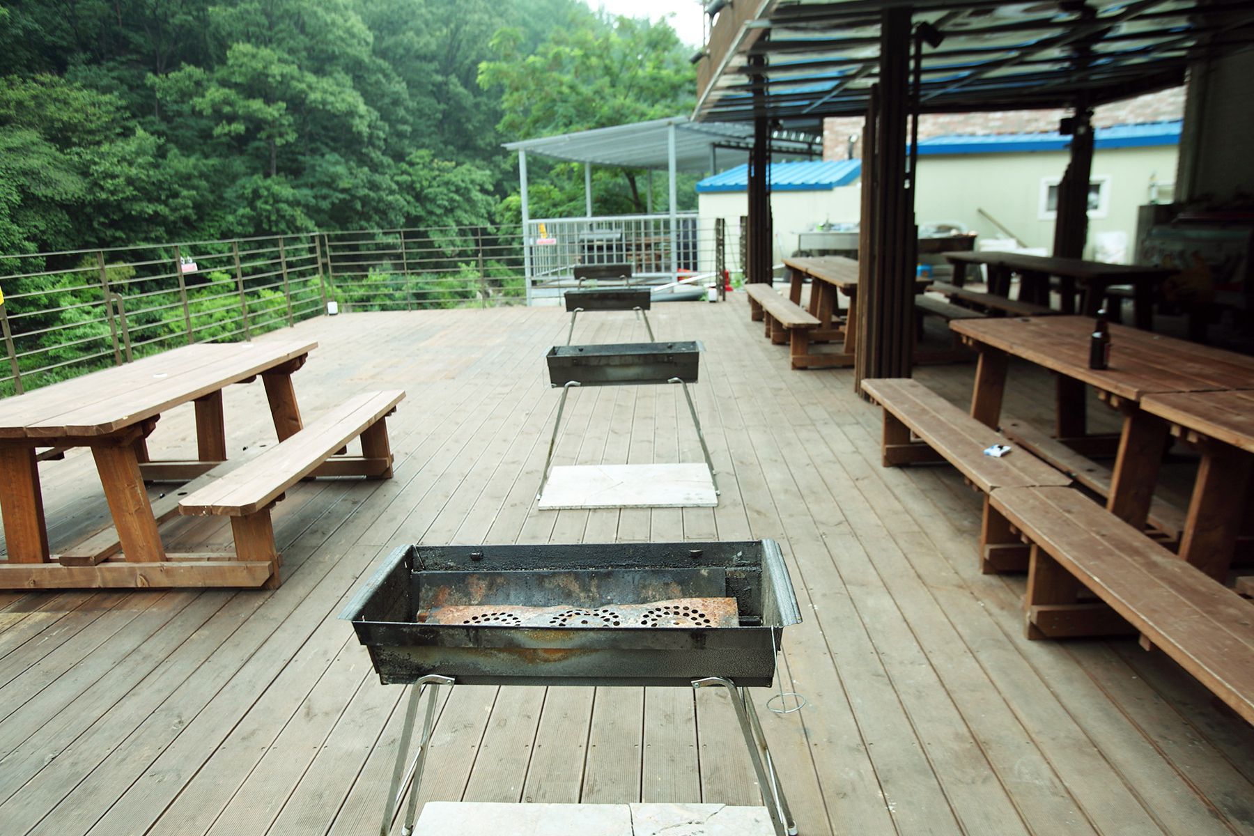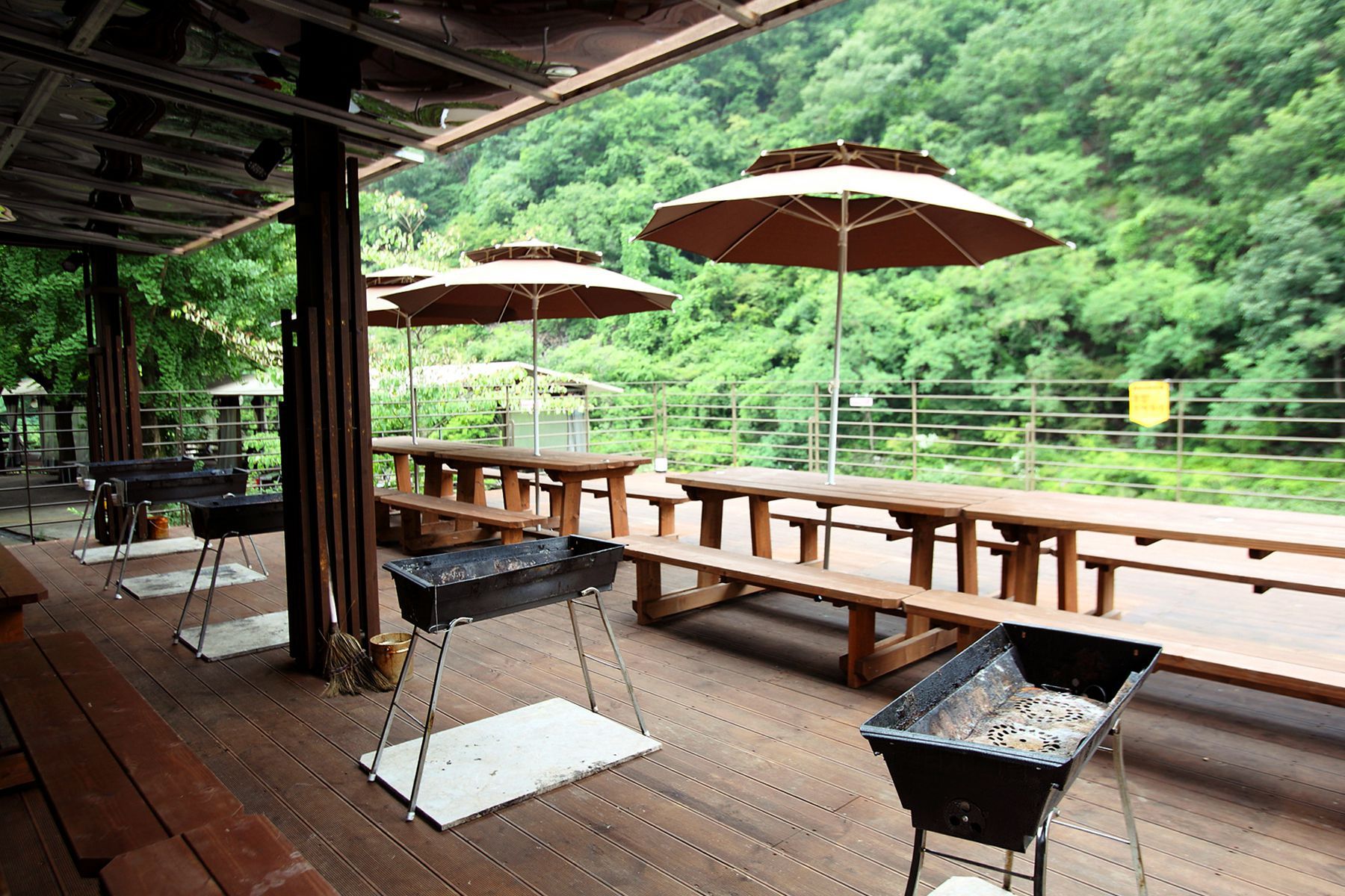 시원하게 펼쳐진 계곡앞에는 흐르는 물소리 들어가며 고기를 구워 먹을 수 있는 바베큐장도 마련되어 있습니다.