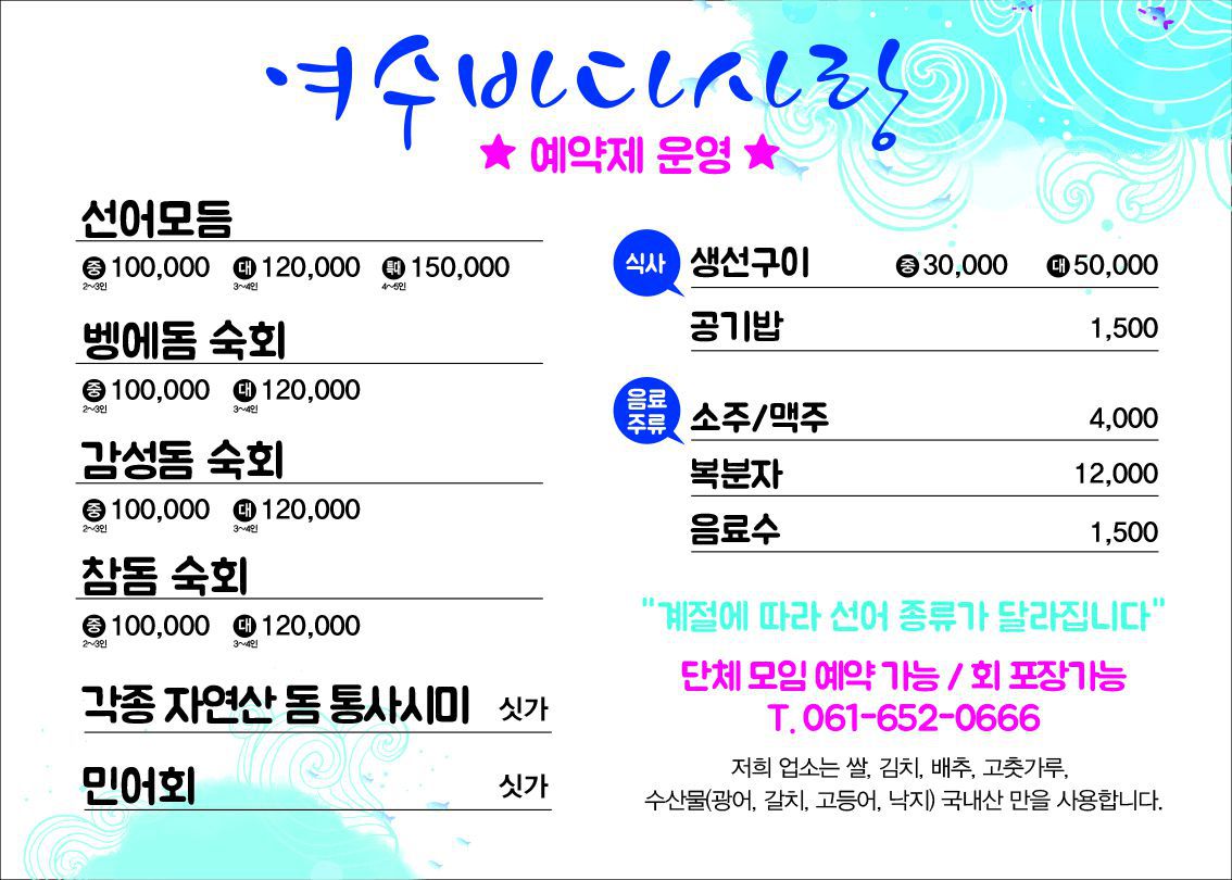 다양한 선어, 활어, 숙회를 드실 수 있도록 메뉴가 준비되어 있습니다.
