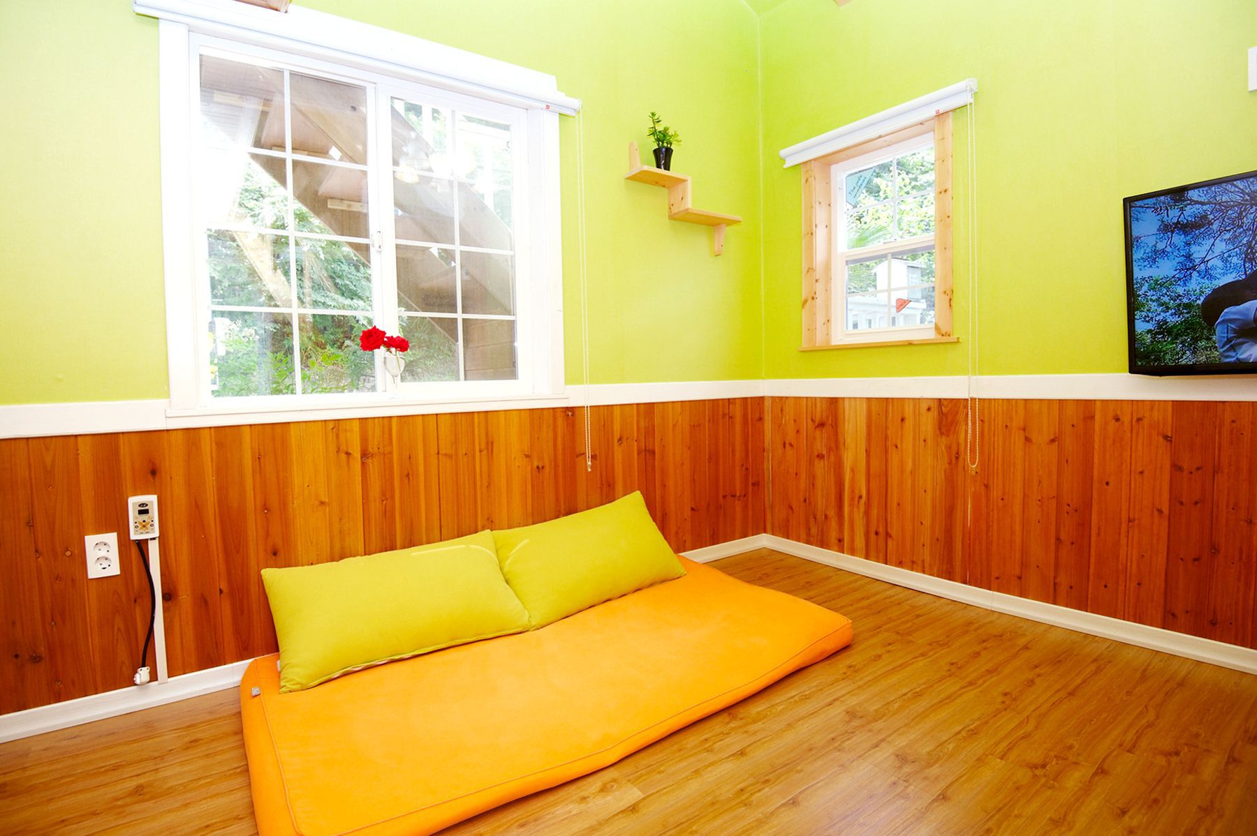 목조건물에다가 마음이 차분해지고 따뜻해지는 색감으로 꾸며져 있어 편히 쉬기에 안성맞춤인 객실을 가지고 있는 펜션이지요.