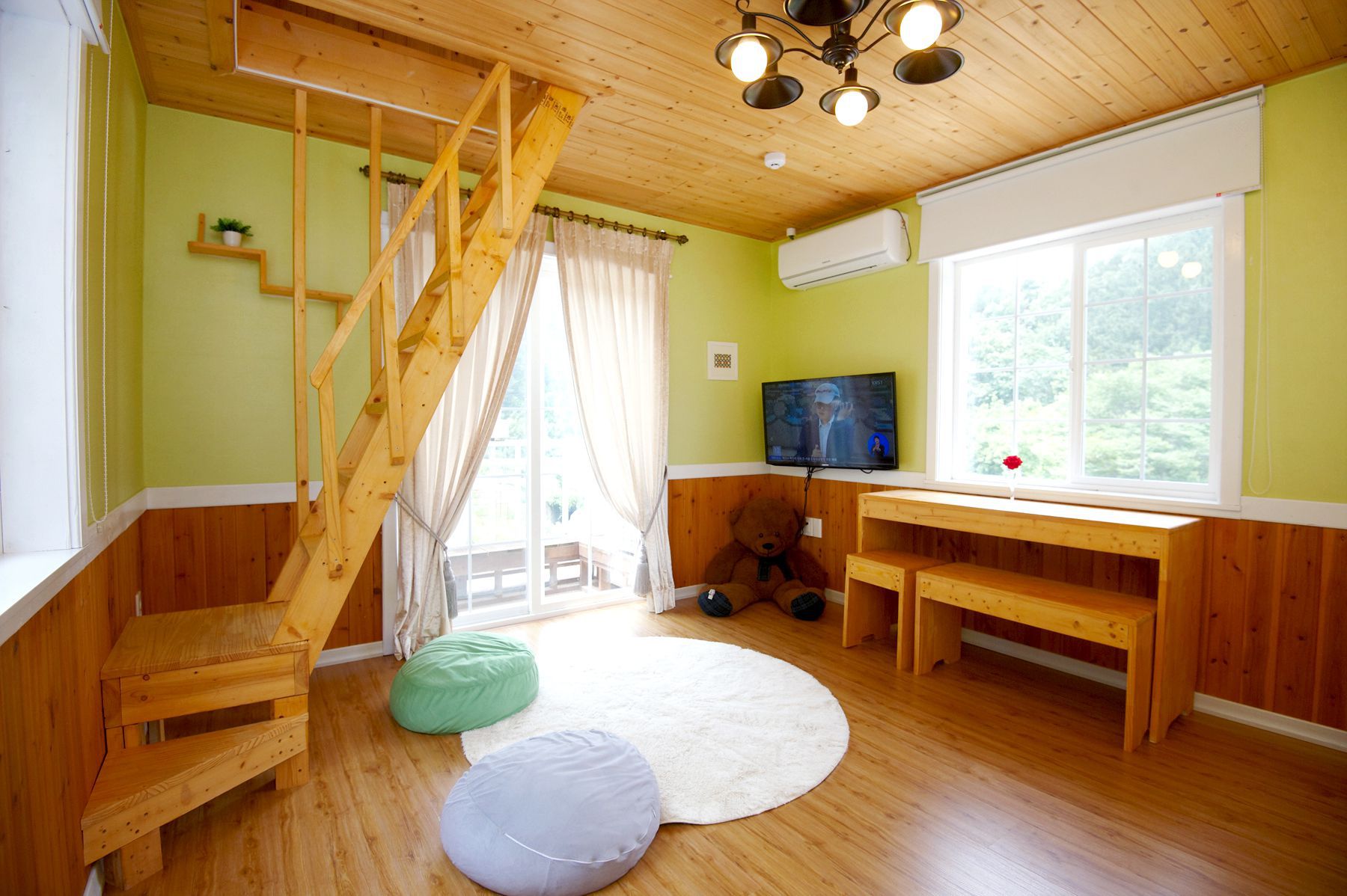 객실은 거실 하나, 아늑한 복층다락과 침대룸으로 구성되어있으며