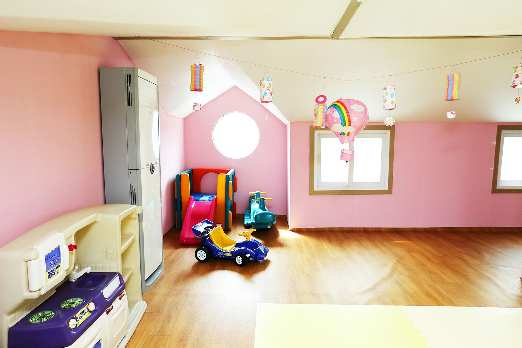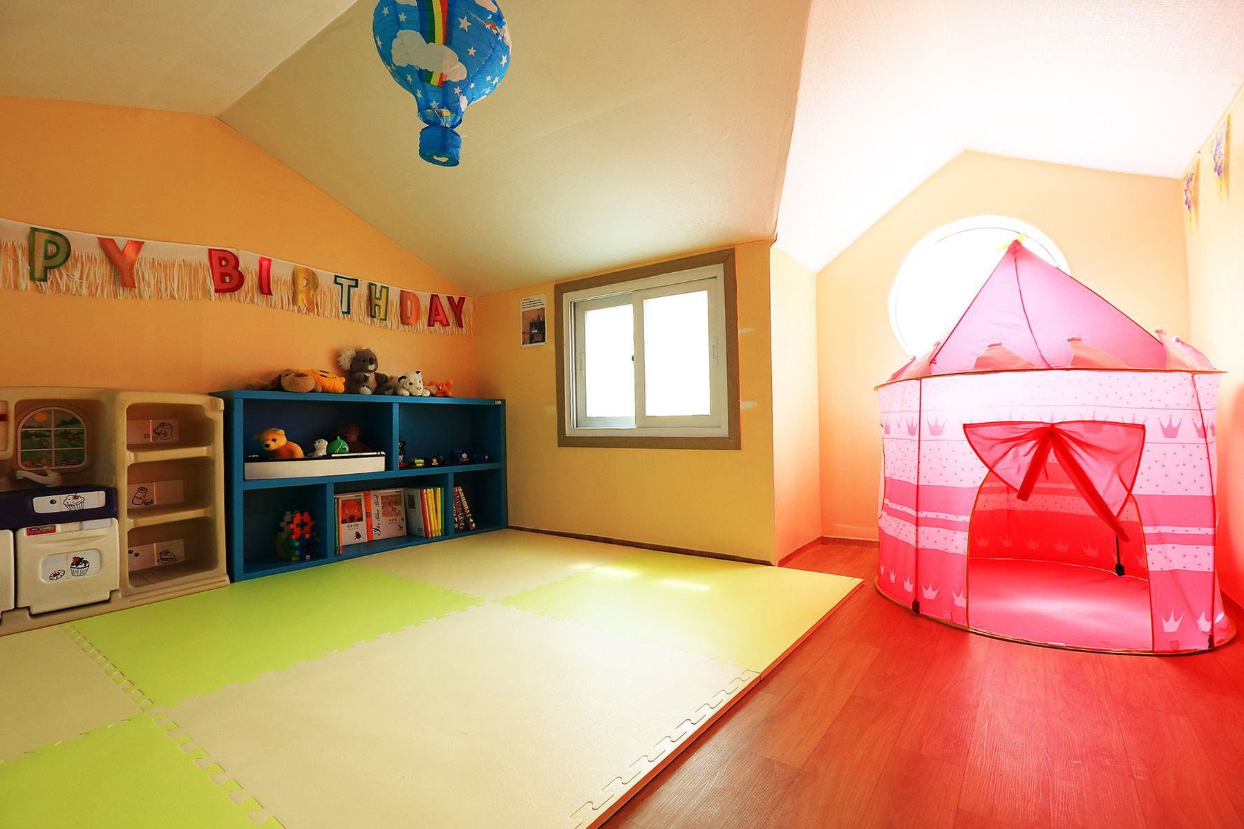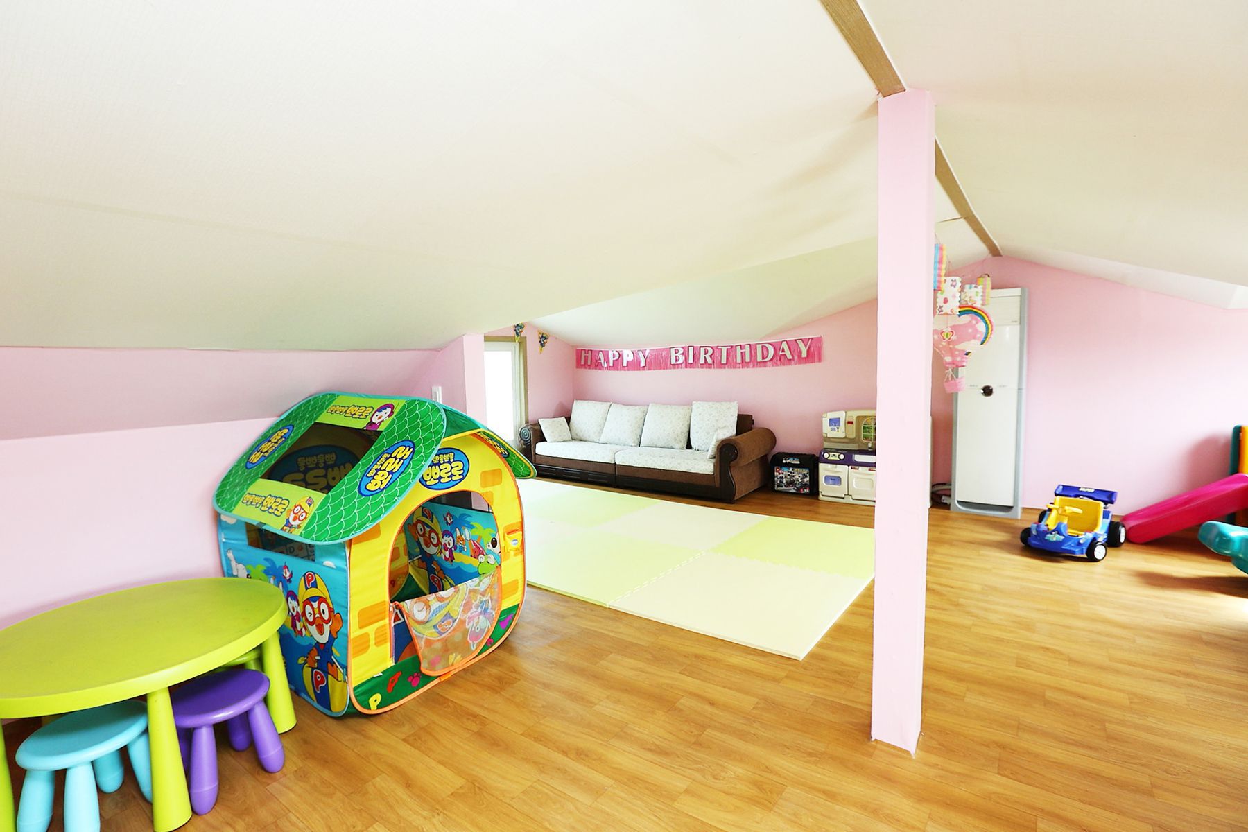 복층형 키즈패밀리룸으로 2층에는 아이들이 안전하고 신나게 놀 수 있는 키즈룸으로 꾸며져 있습니다.