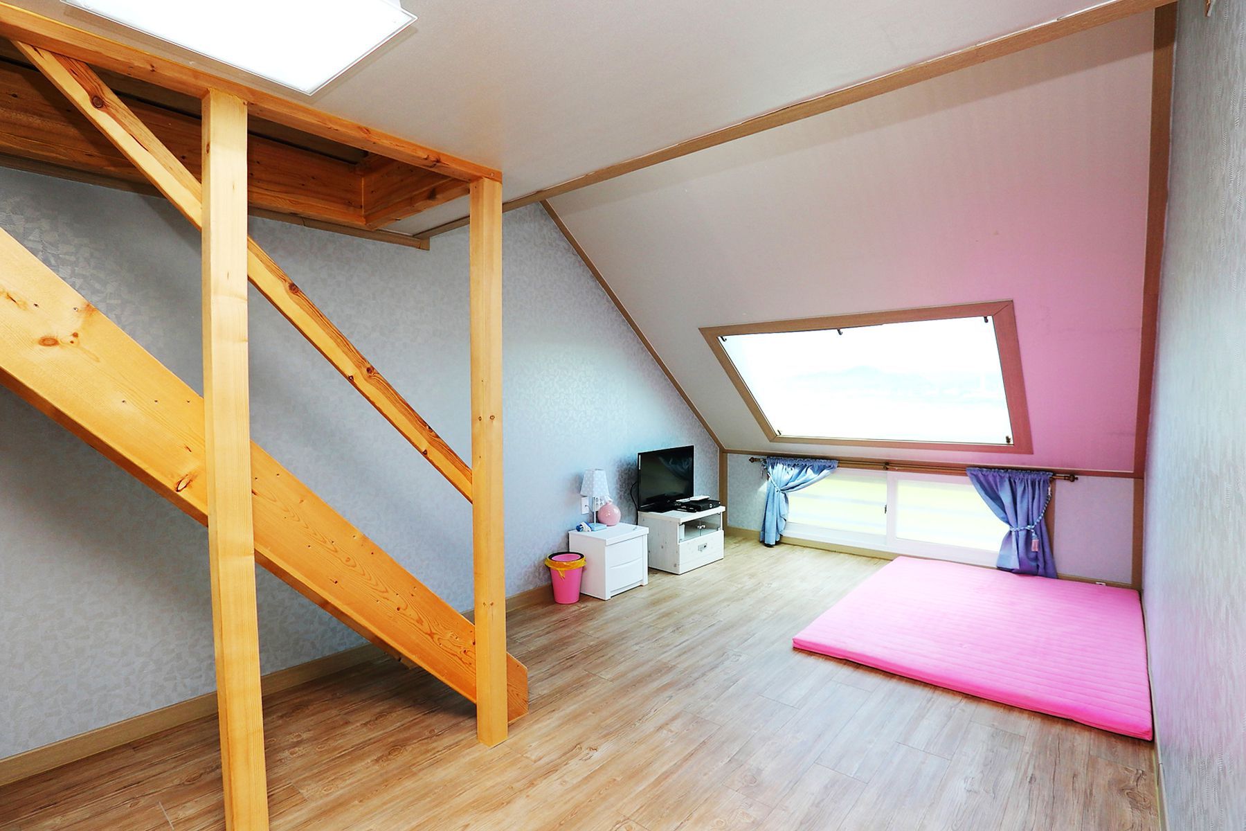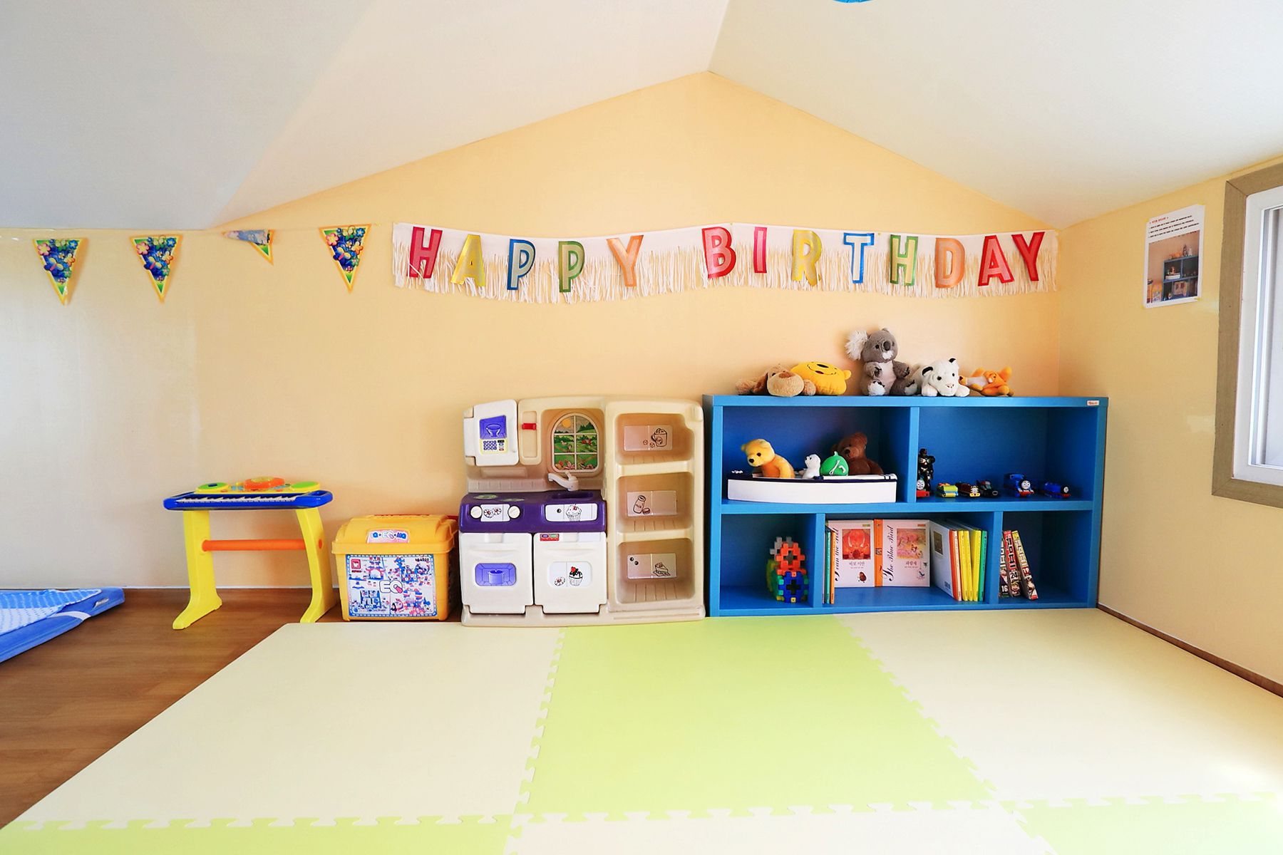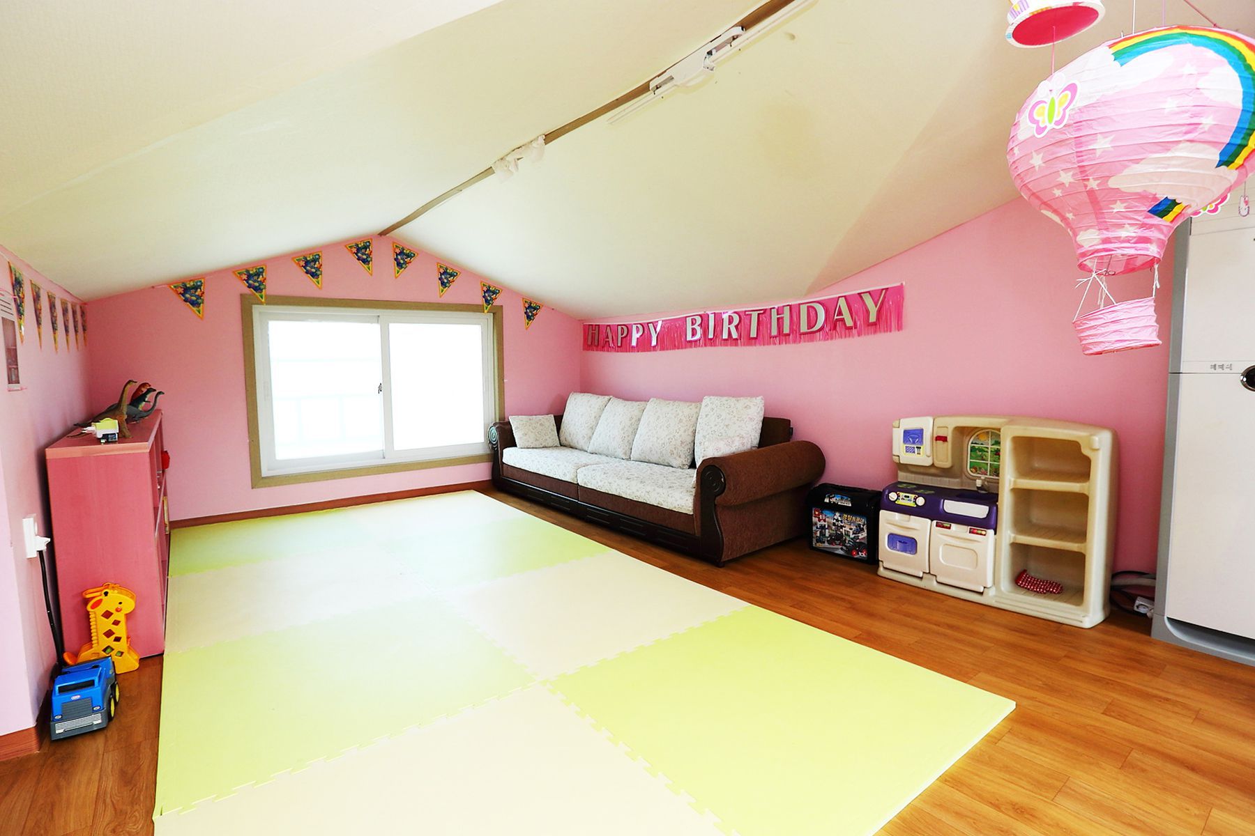 복층형 키즈패밀리룸으로 2층에는 아이들이 안전하고 신나게 놀 수 있는 키즈룸으로 꾸며져 있습니다.