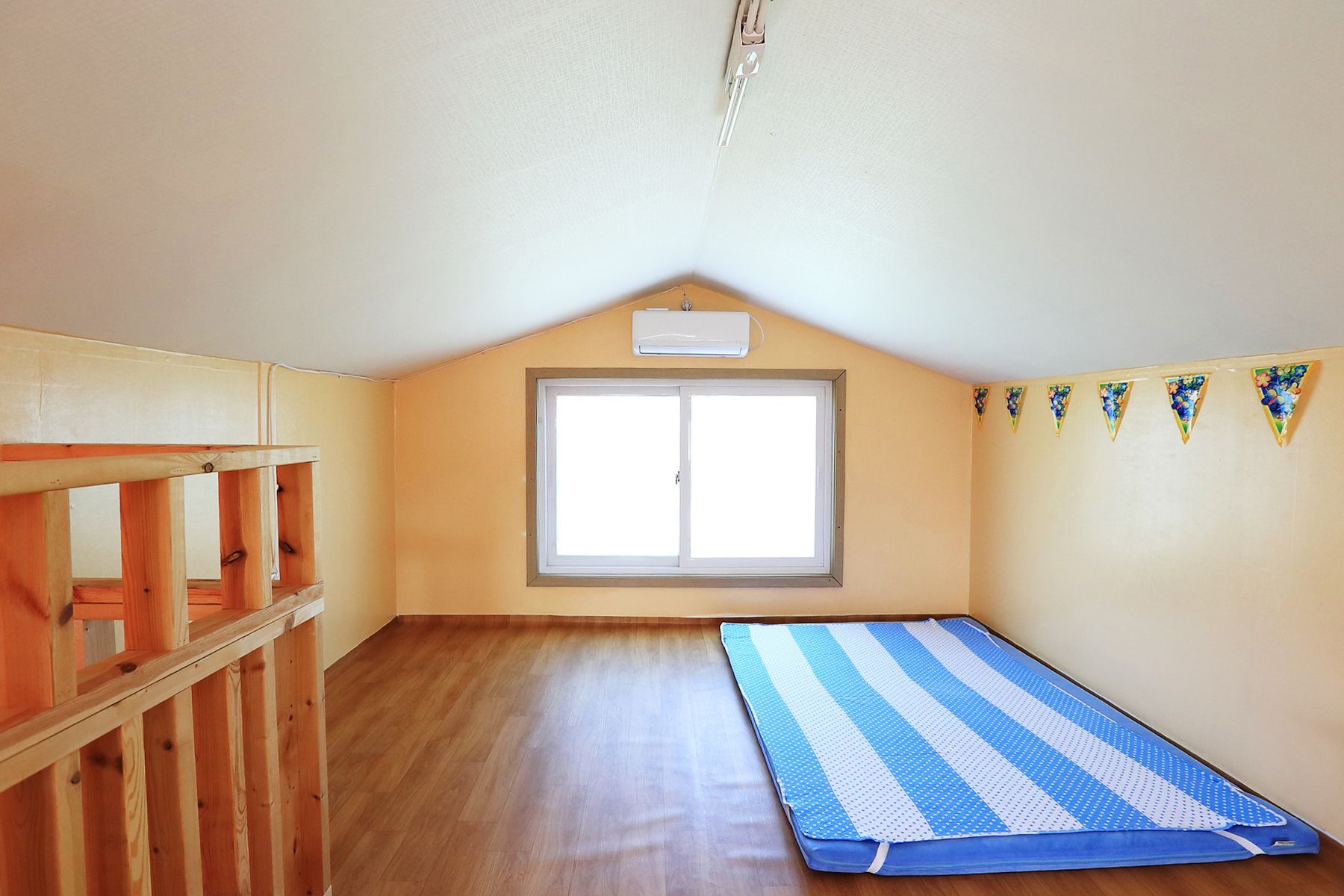 대형복층룸으로 1층에는 방이 2개 있고 2층에는 아이들이 즐겁게 놀 수 있는 키즈룸이 꾸며져 있습니다.