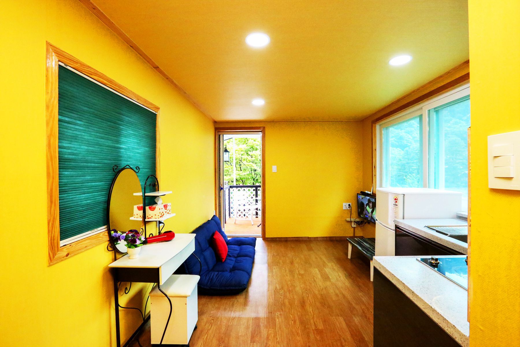 옐로우룸은 복층형커플룸으로 2인이 이용할수 있고 산마루1,산마루2객실은 기준6명에 최대10이 이용할수 있는 가족및 단체룸이랍니다.