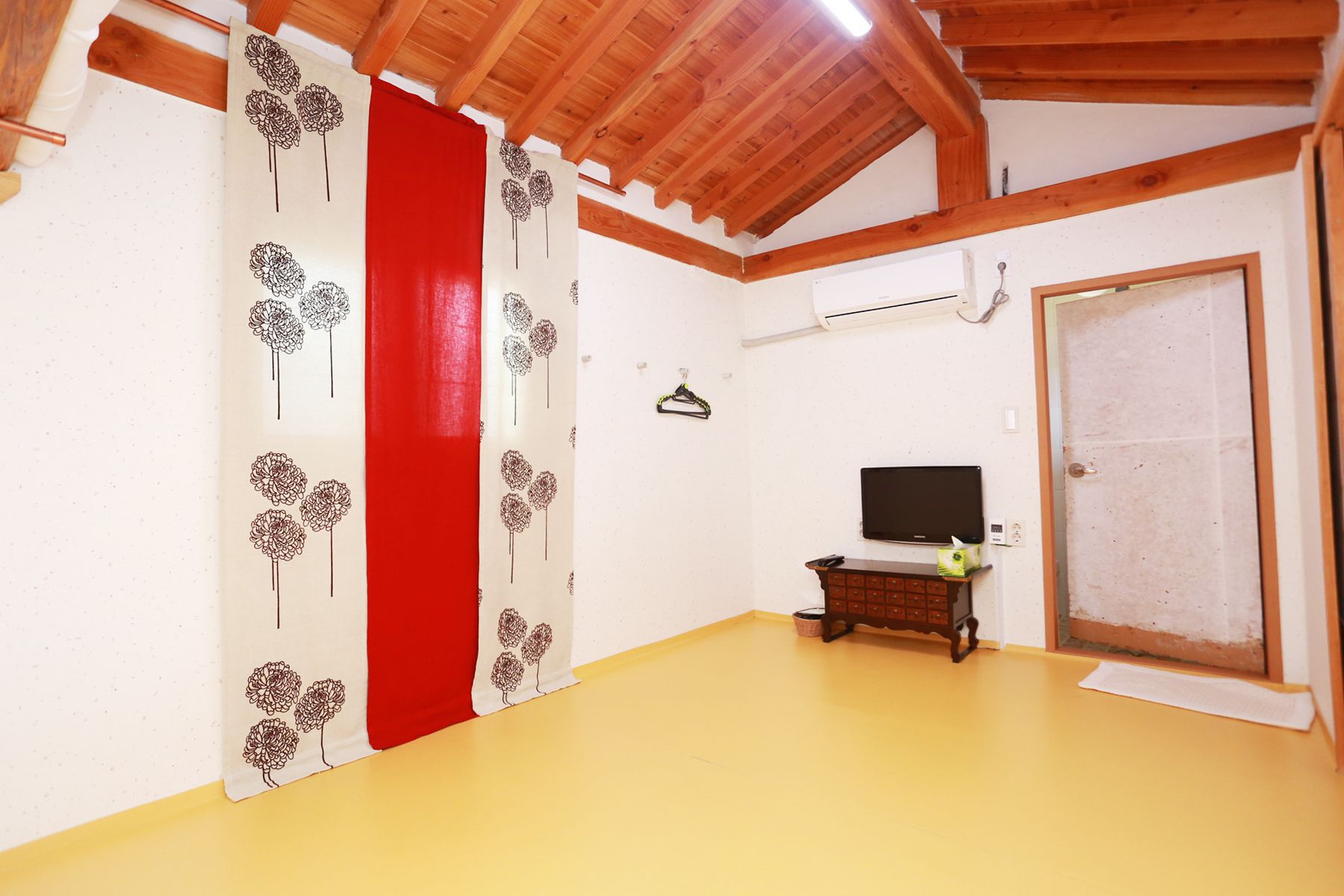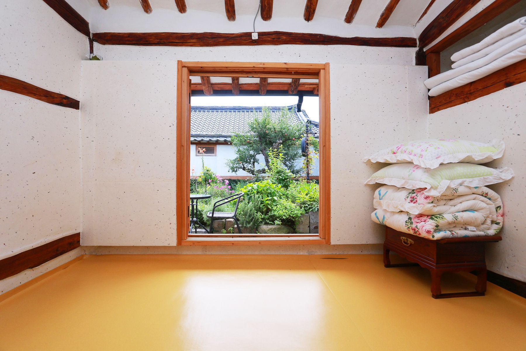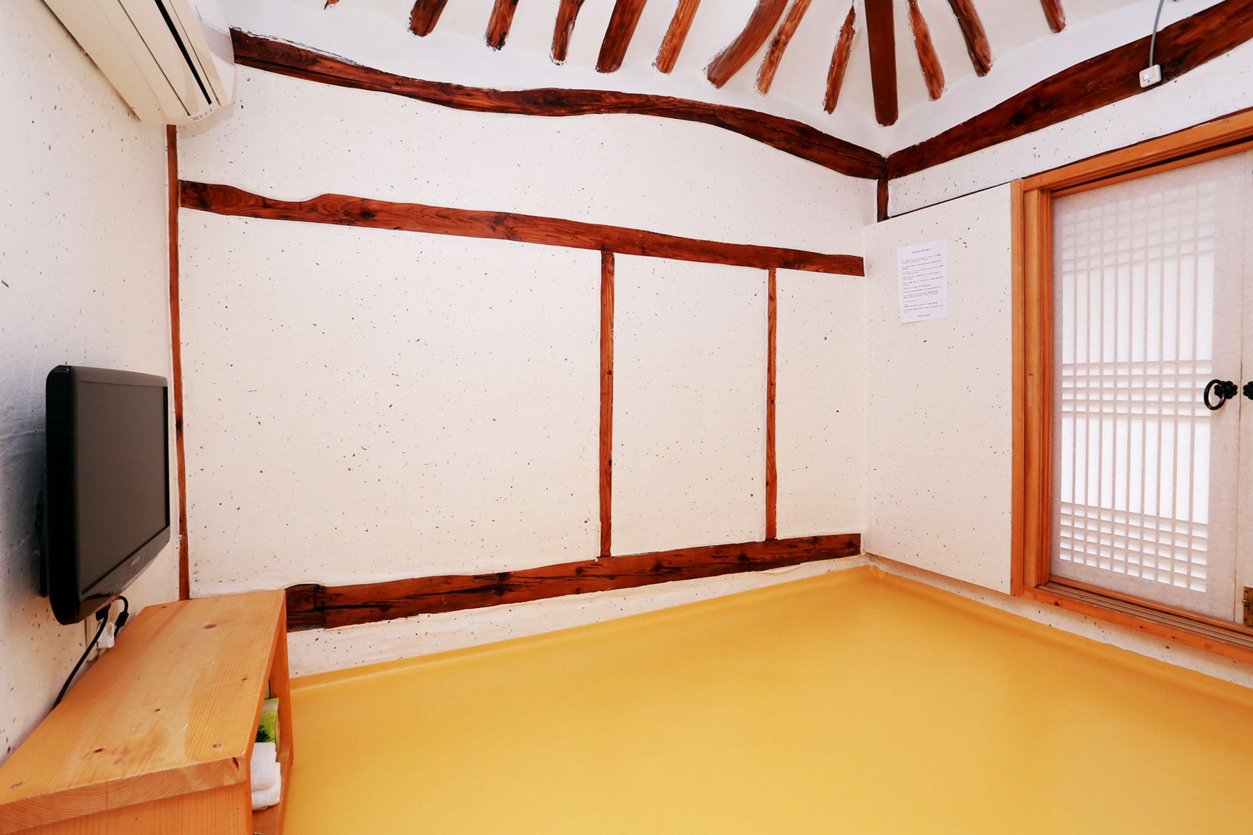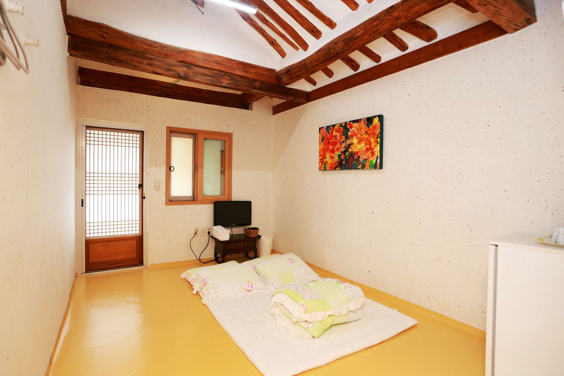 방 안 천정에는 투박한 서까래로 전통한옥 분위기를 느끼기에 충분한 공간입니다.^^