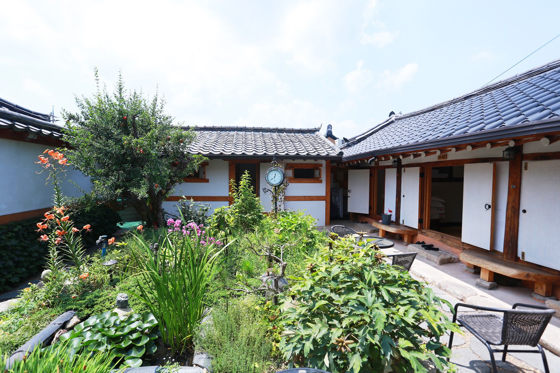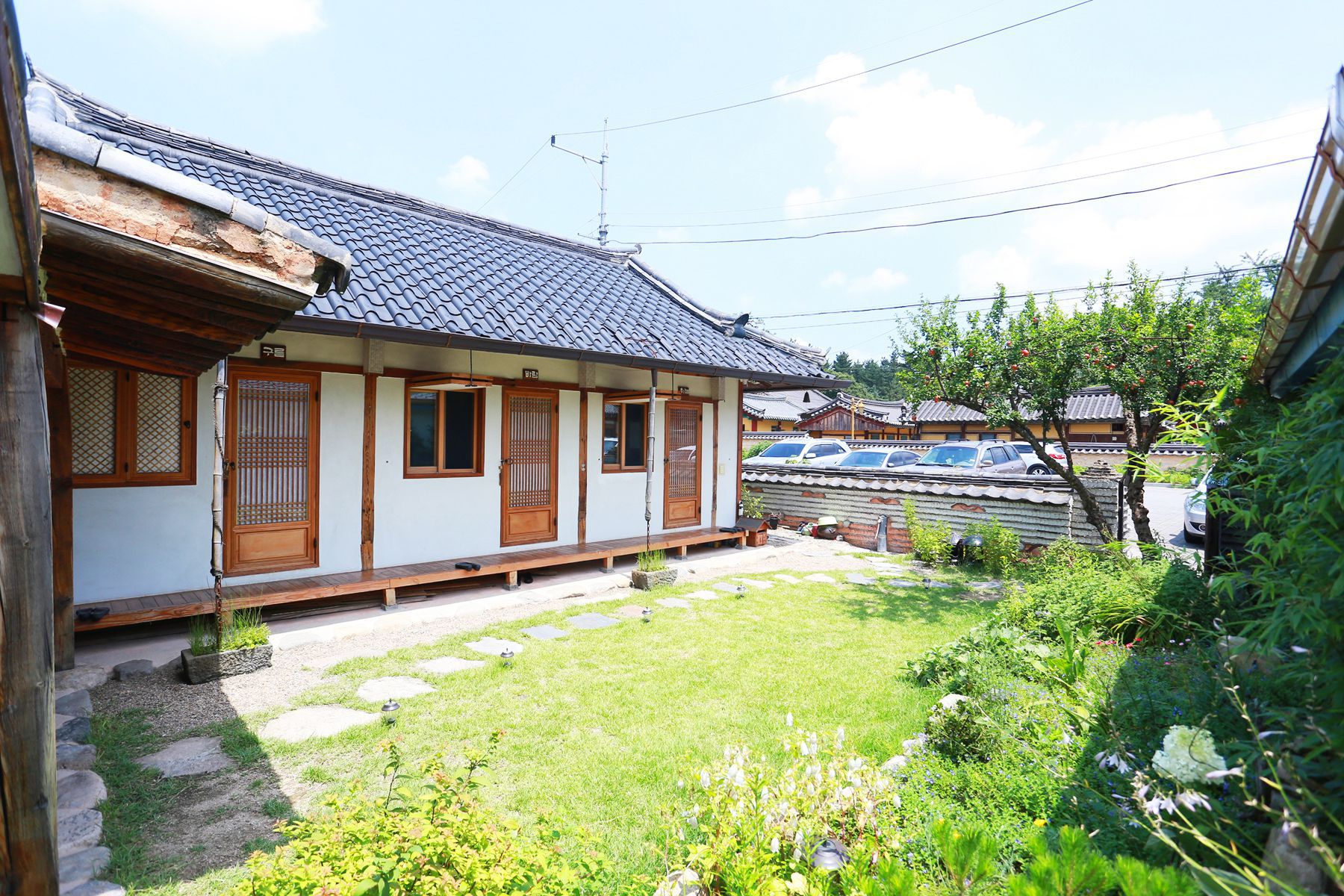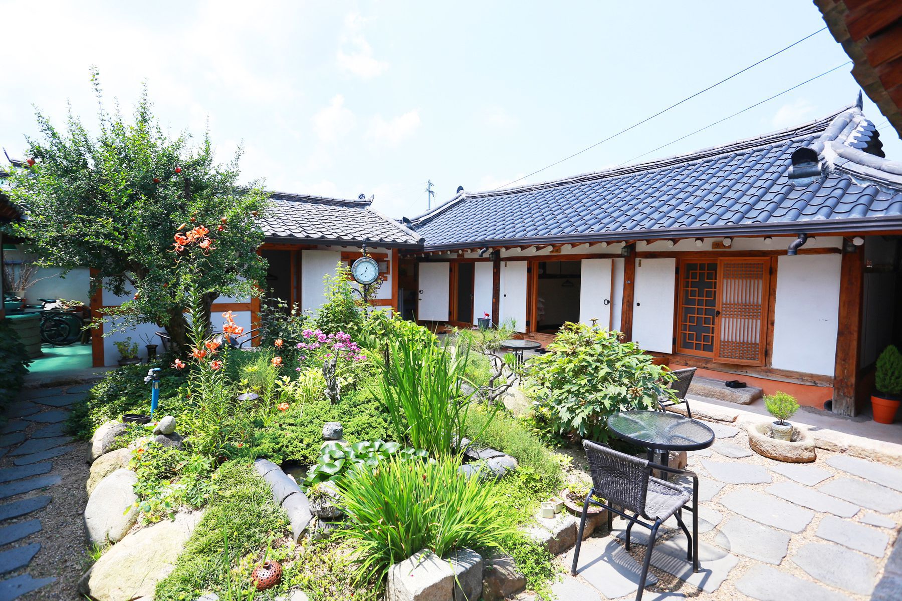 100년 지난 한옥을 2012년에 새롭게 단장해 오래된 도시에 어울리는 수수한 한옥에 코끝을 간질이는