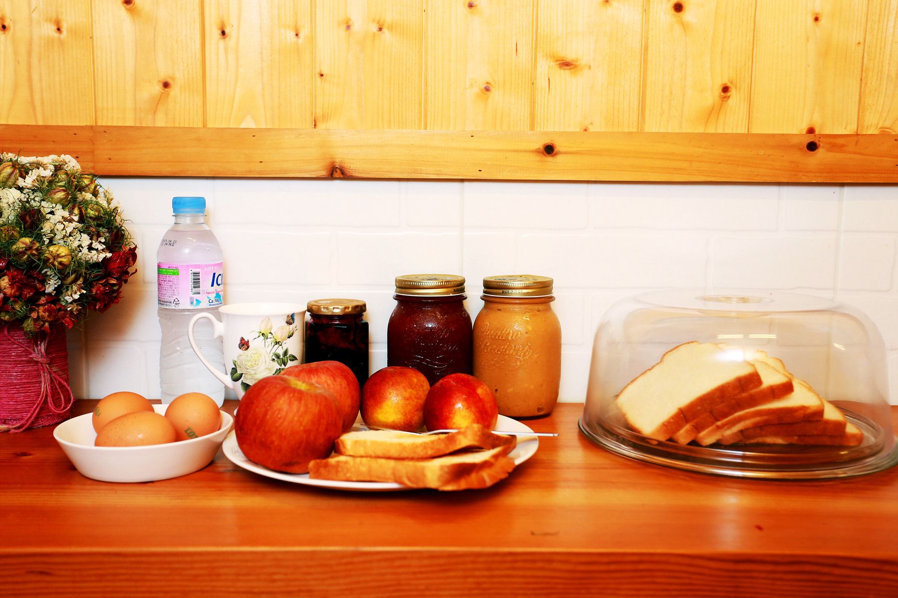 공동으로 이용할수 있는 로비라운지에는 빵,계란,우유,쨈 이 준비되어 있어