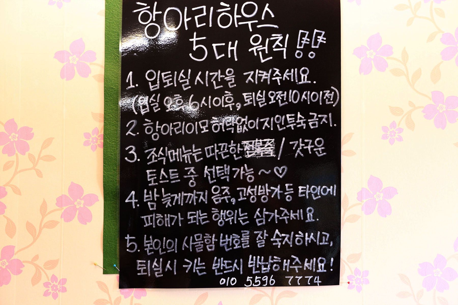 또한 항아리하우스 5대 원칙만 서로 지켜주신다면 누구나 내집처럼 편안하게