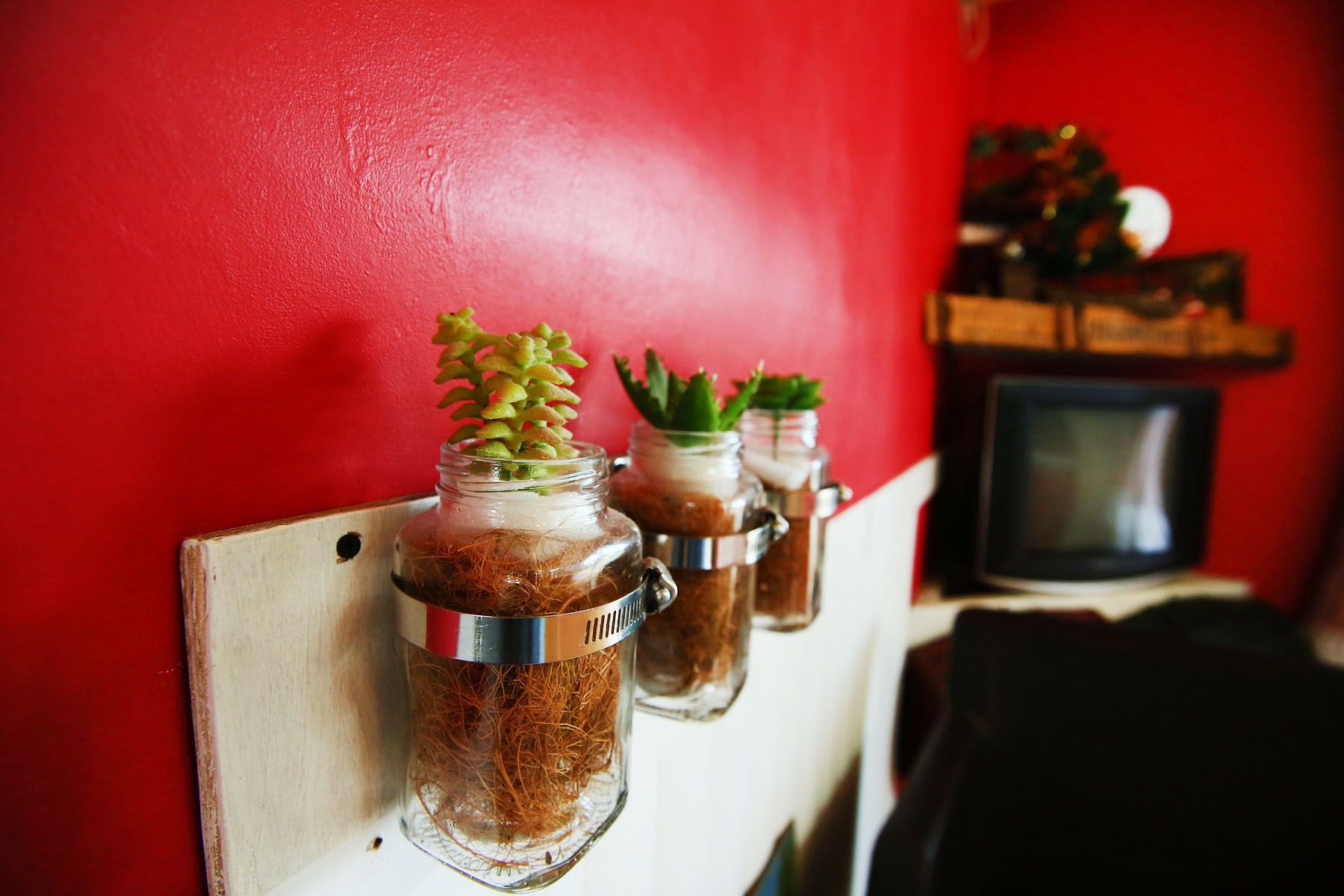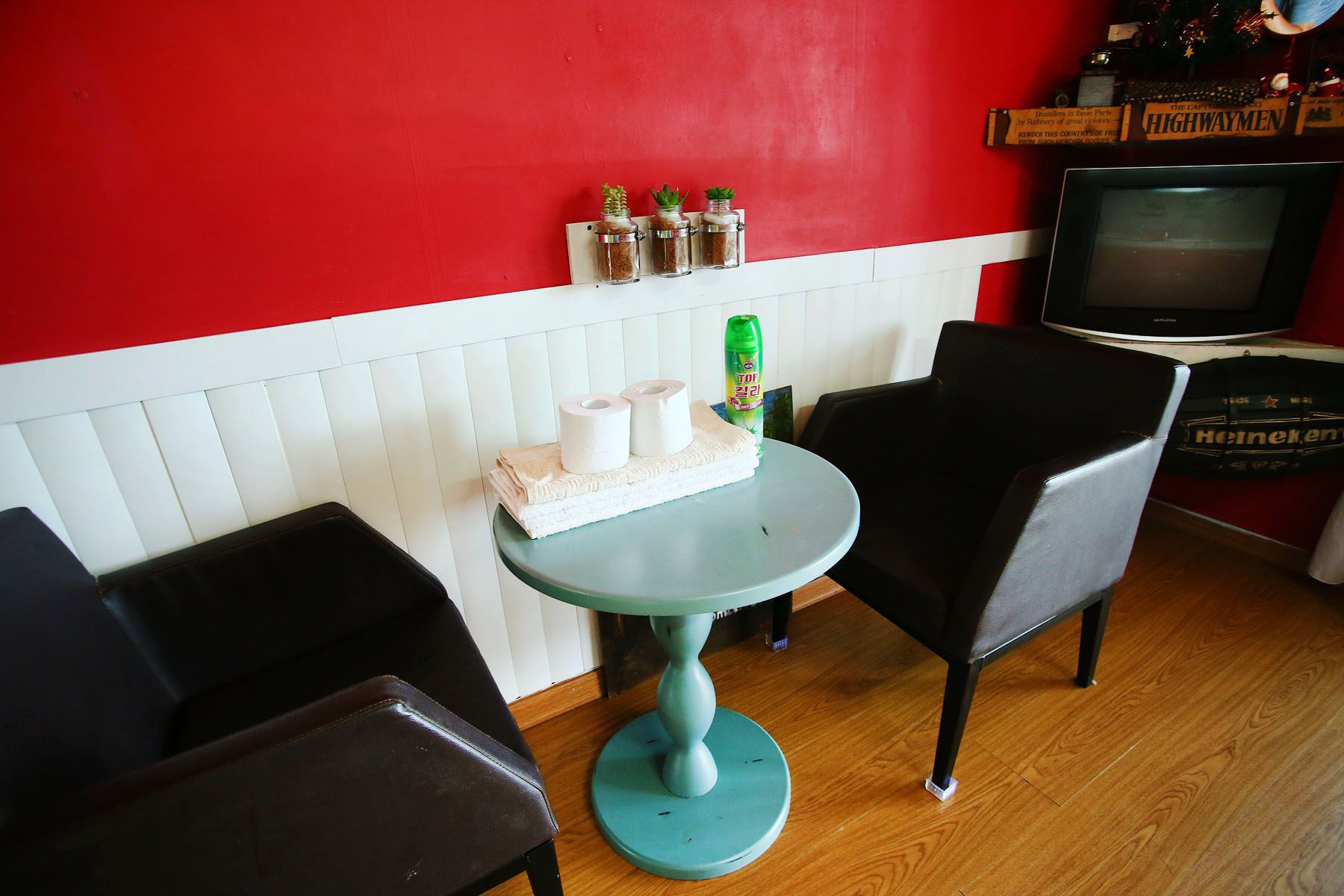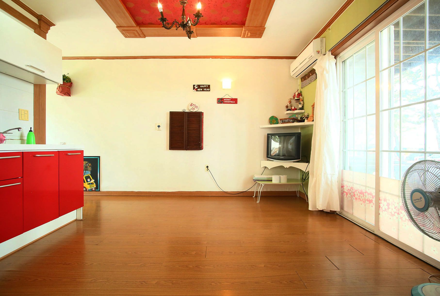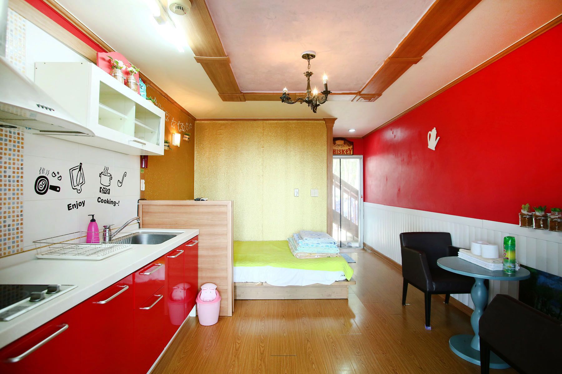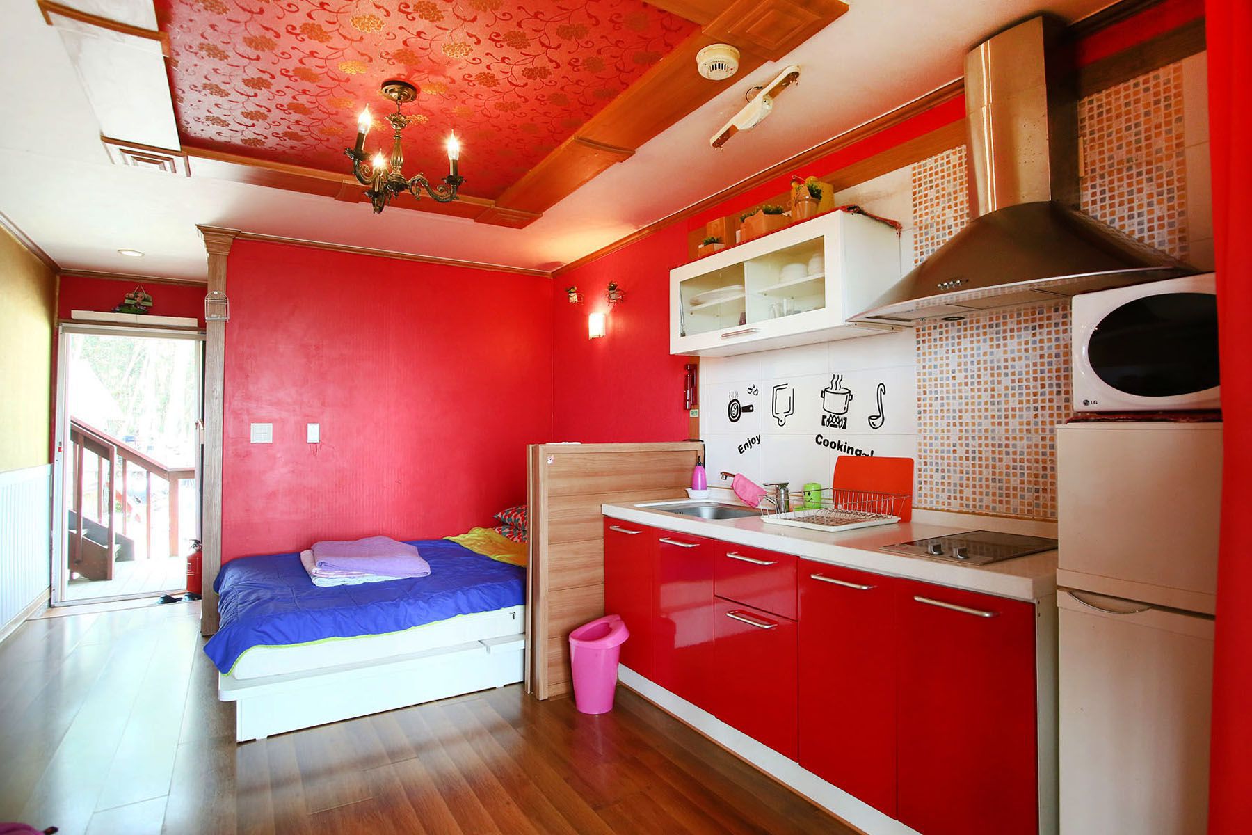 방마다 레드앤 화이트로 포인트를 주었고 아기자기한 인테리어로