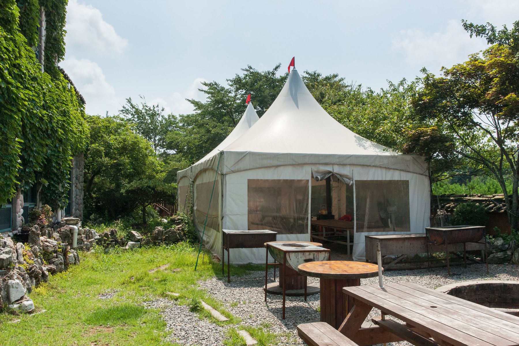 몸과 마음을 힐링할수 있는 넓고 싱그러운 정원에는 파고라와 그네가 마련되어 있어