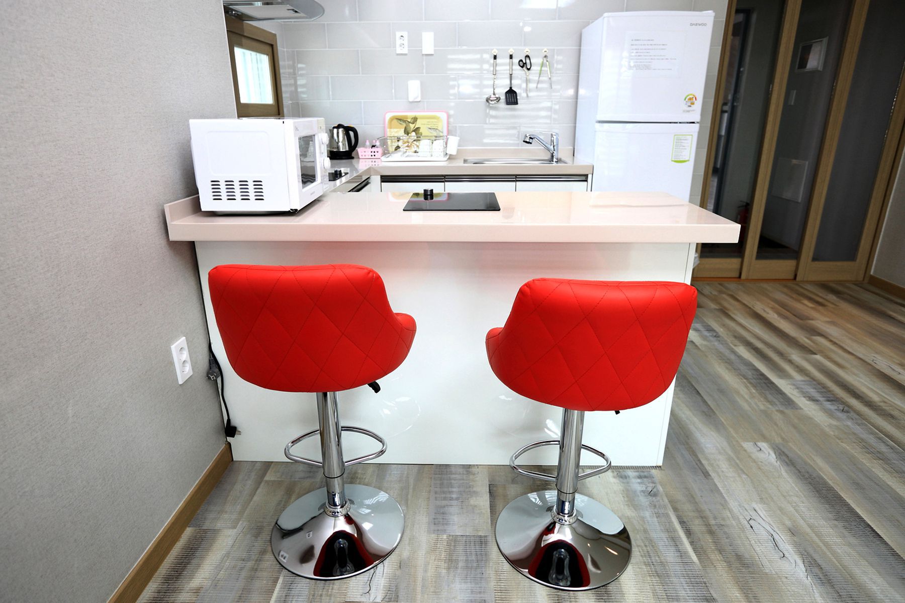 어린아이가 있는 가족단위 여행객들이 많이 머무르시는편이며, 센스있게 아기의자까지 준비가 되어 있습니다.