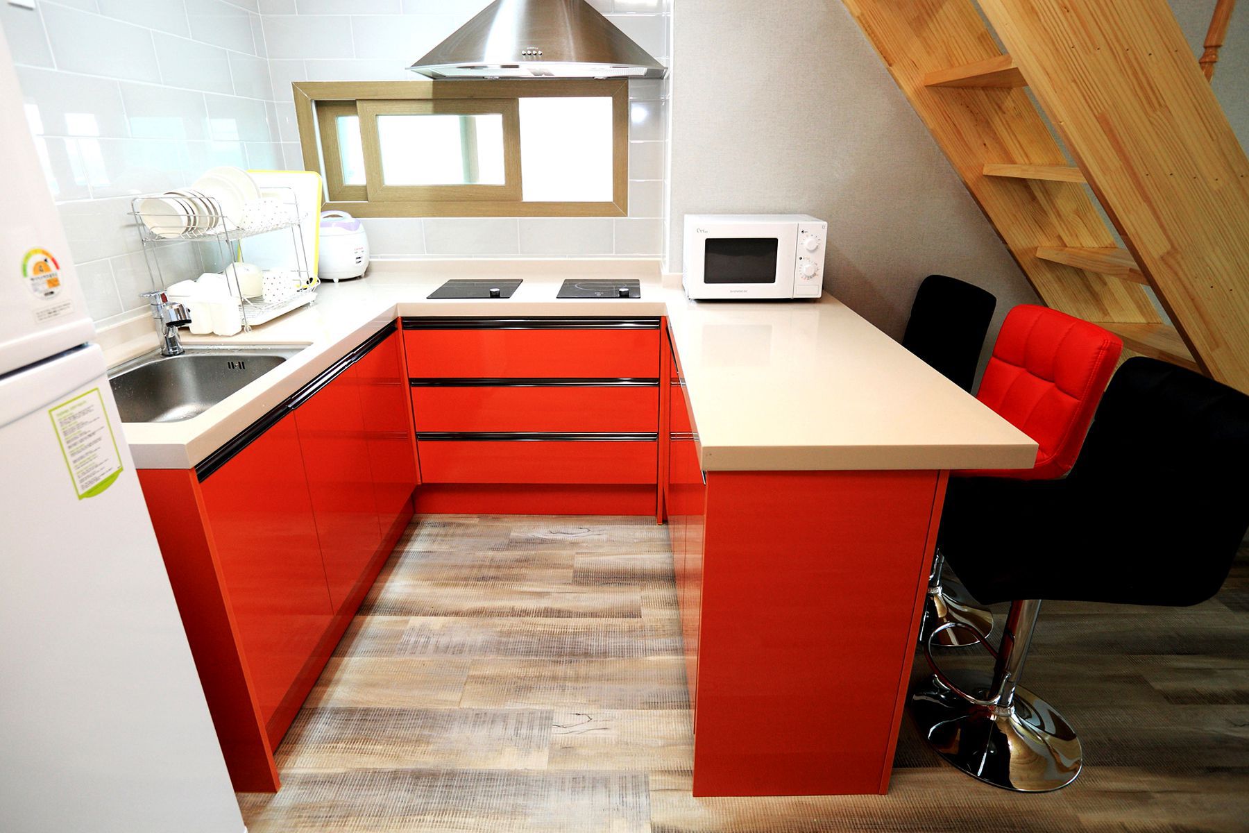 냉장고,전자렌지,각종 조리기구,냄비등 간단하게 요리할 수 있도록 필요한 주방의 모든것들이 갖추어져 있습니다.