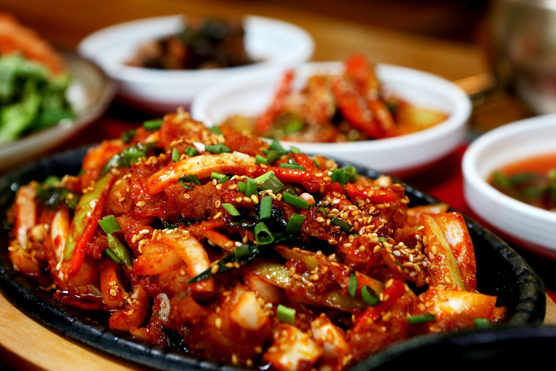 맛깔스러운 매콤한 양념과 부드러운 돼지고기를 함께 볶아만든 철판두루치기는 고소한 고기와 양념의 조화가 잘어울러져 있습니다!
