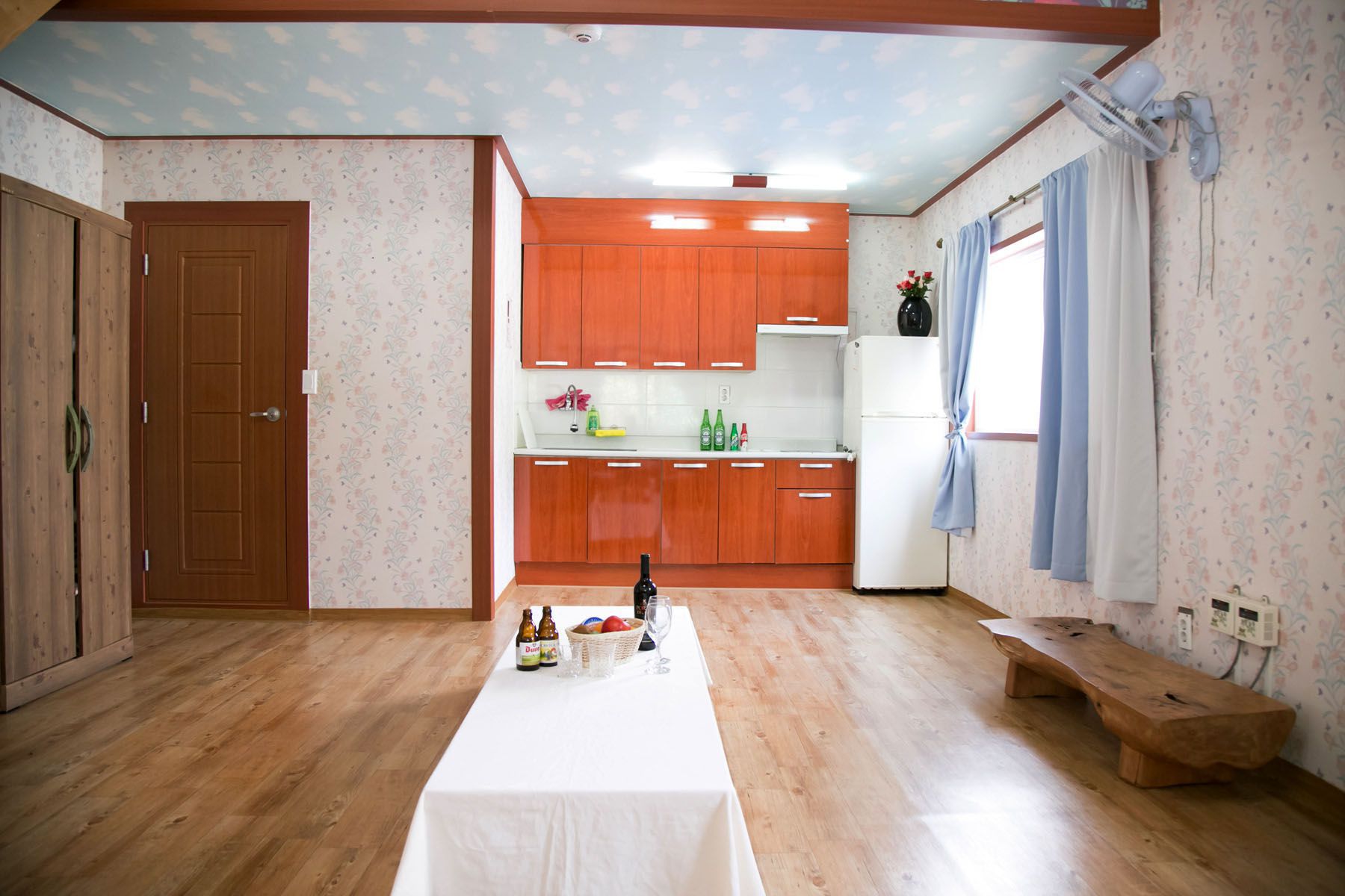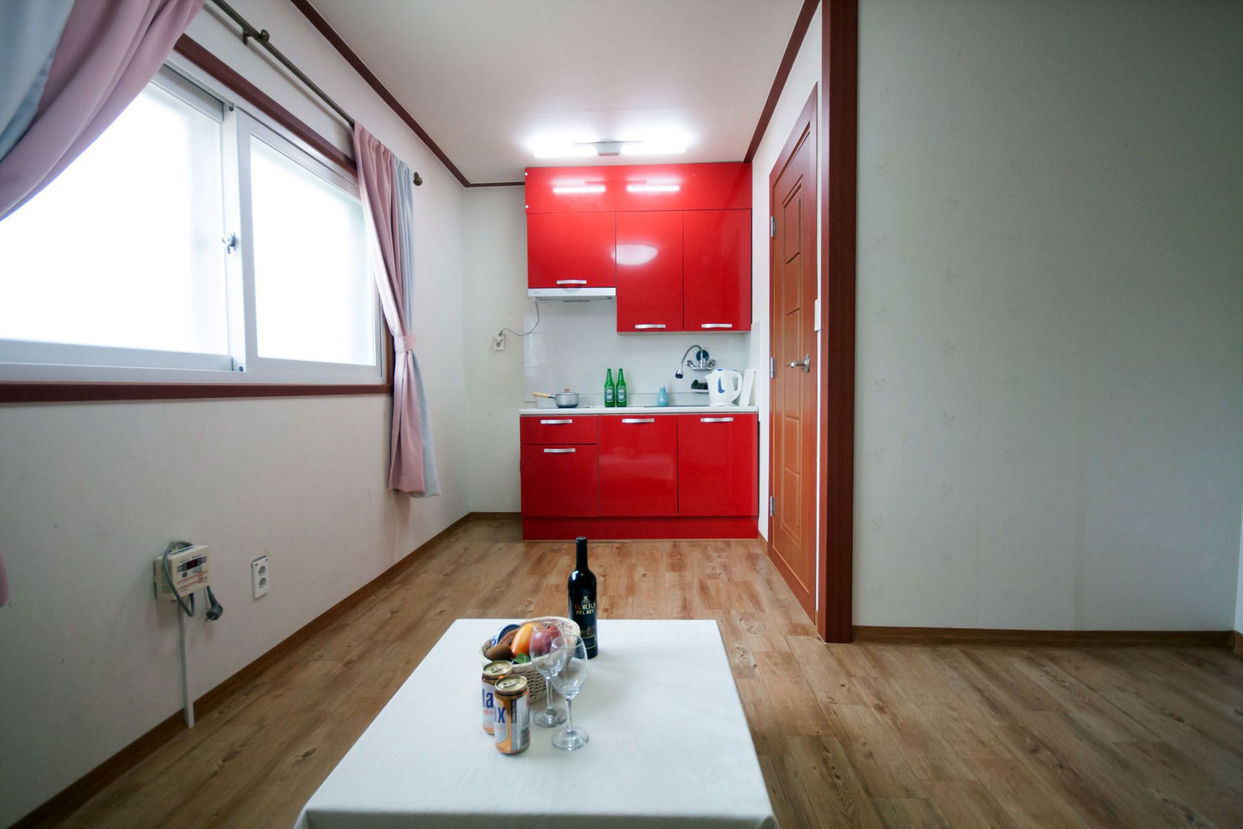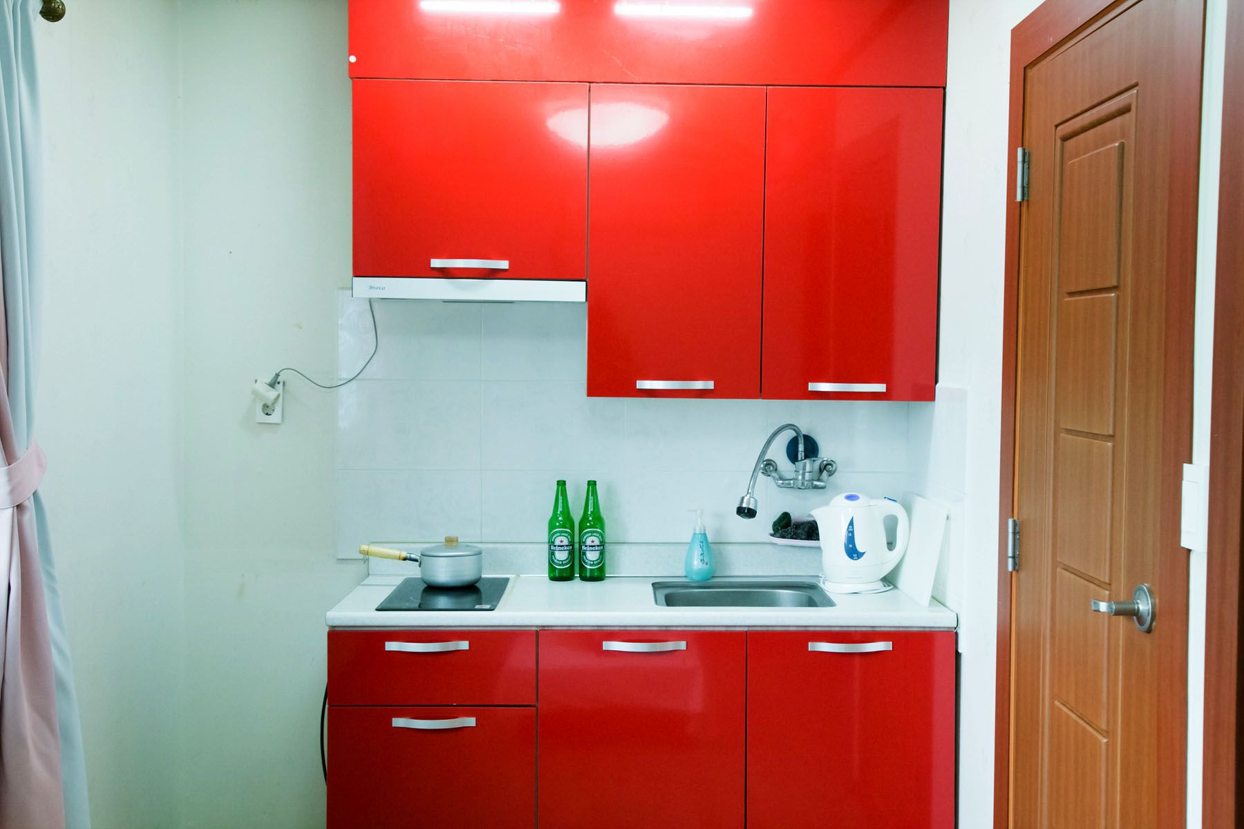 세련된 느낌의 부엌에도 왠만한 물품들은 서비스로 배치되어 있어 부족함 없이 편안하게 사용해 보실 수 있으며