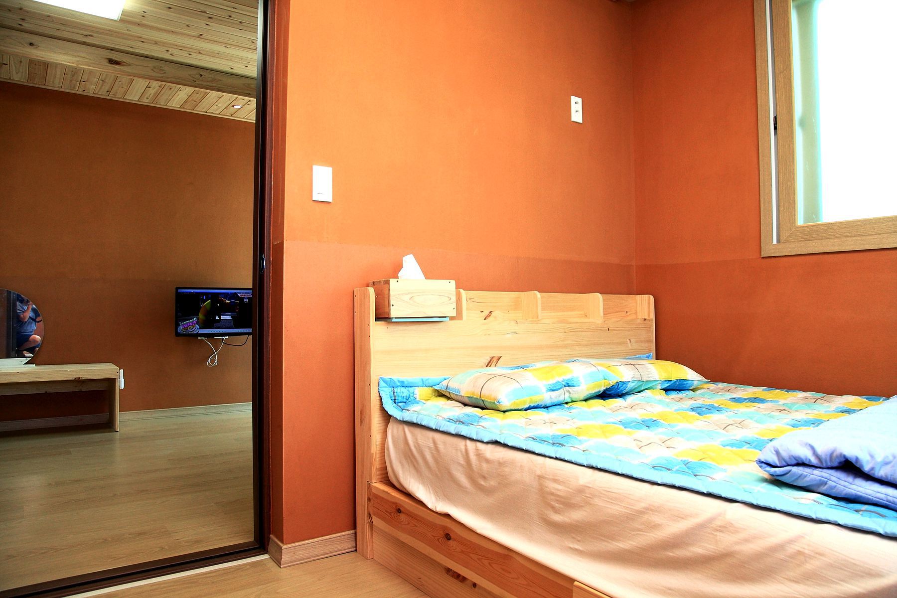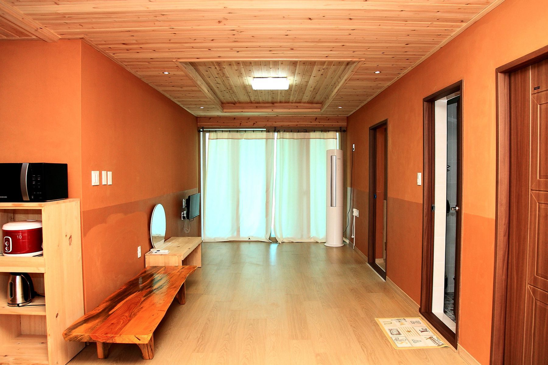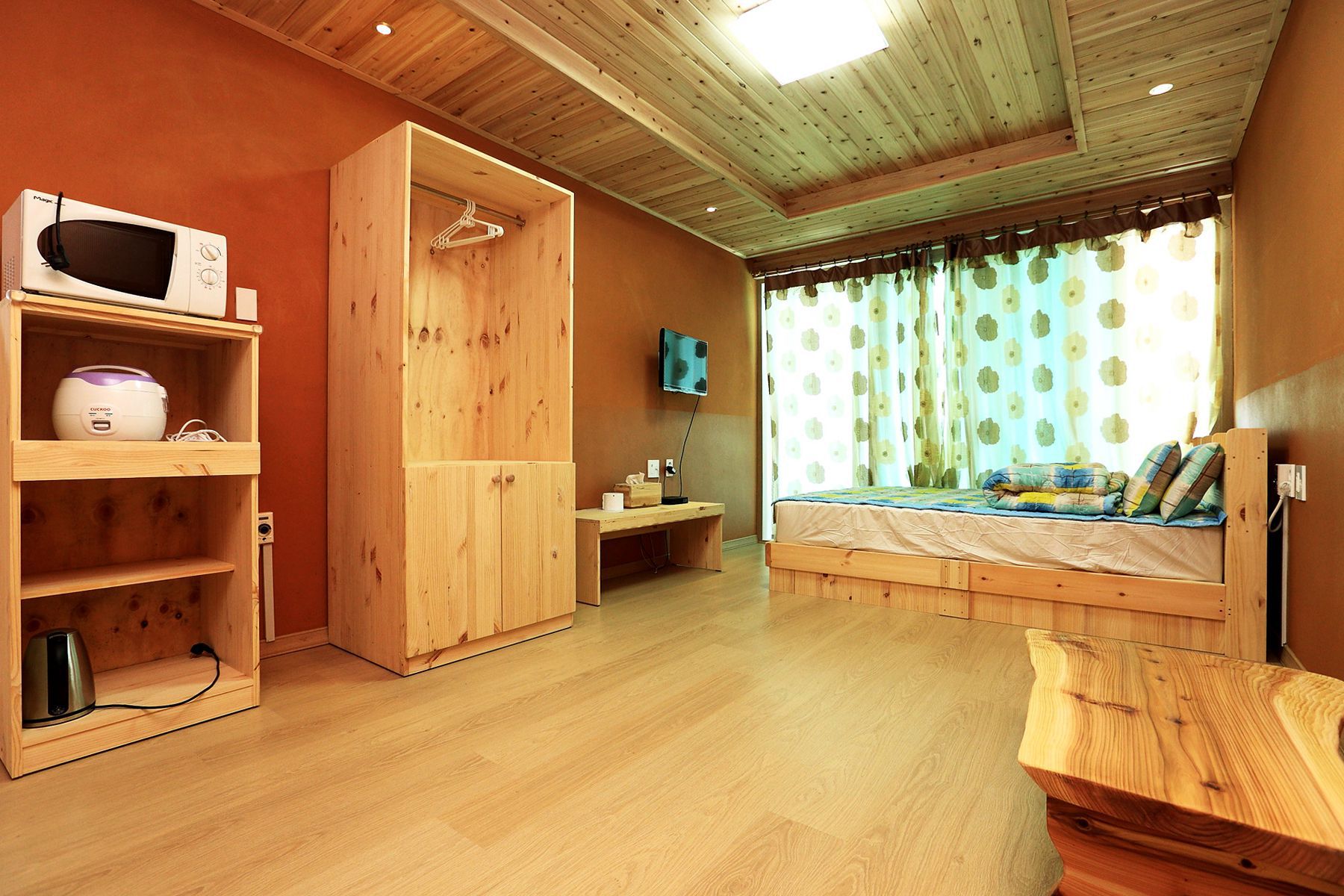 편백나무로 만든 객실의 천장과 황토로 만든 벽이 친환경적이라 머무는 사람들의 건강까지 생각하고 있습니다.