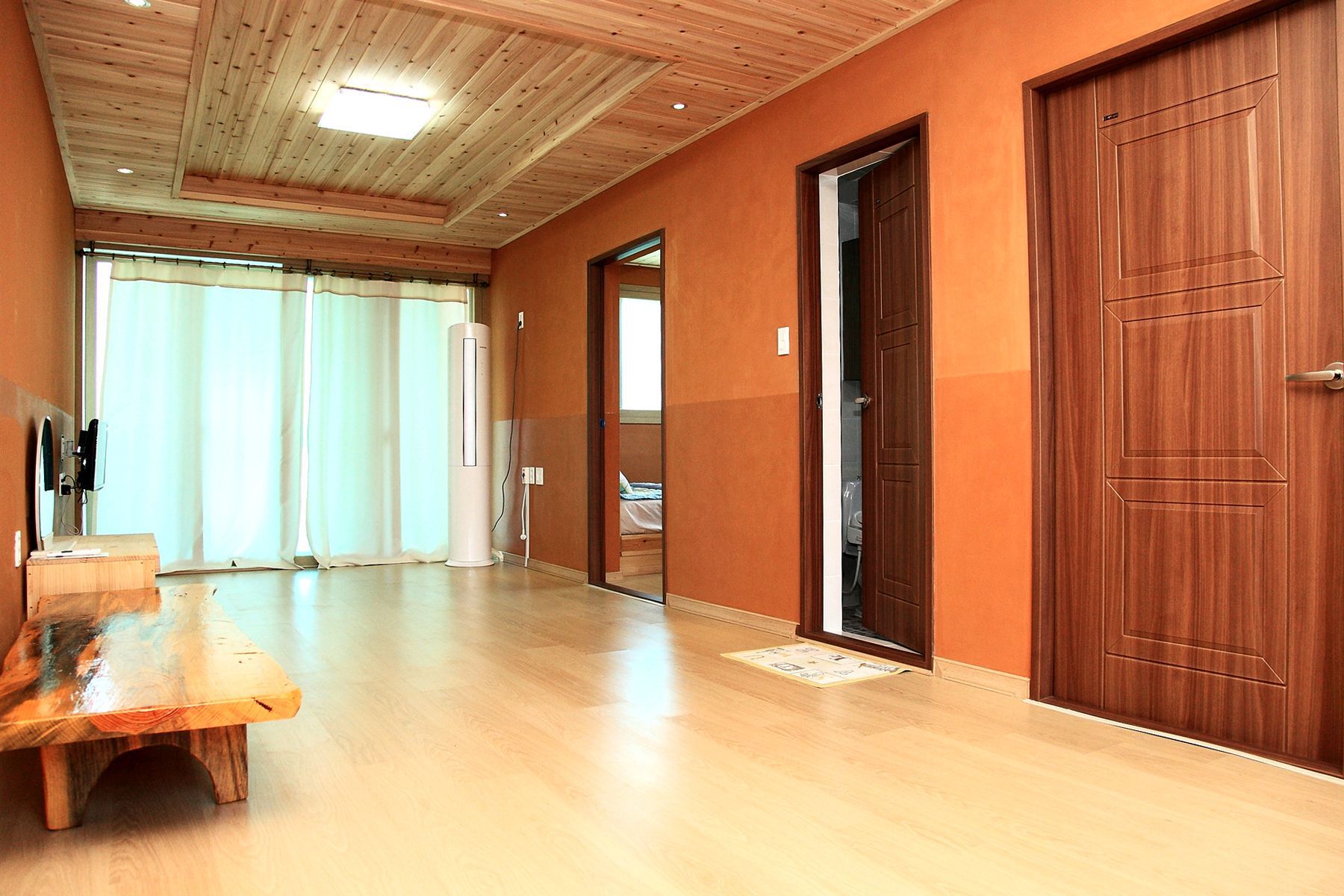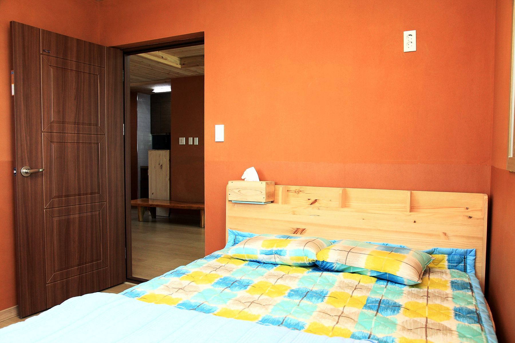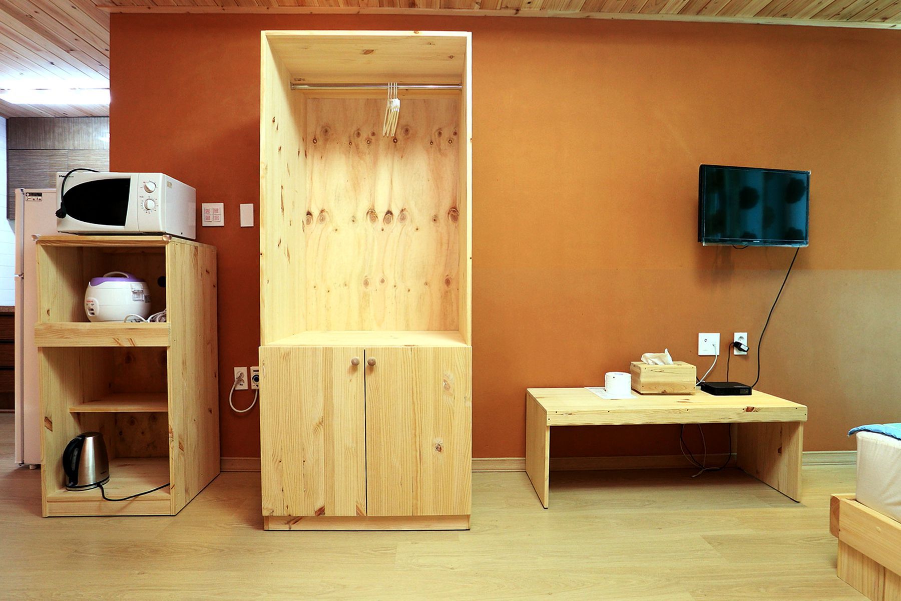 편백나무로 만든 객실의 천장과 황토로 만든 벽이 친환경적이라 머무는 사람들의 건강까지 생각하고 있습니다.