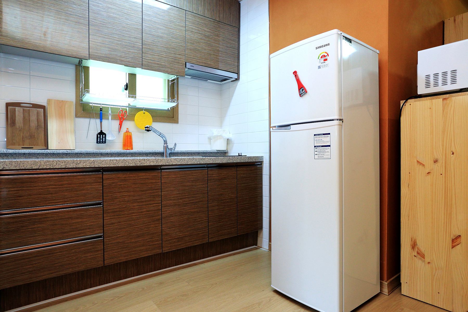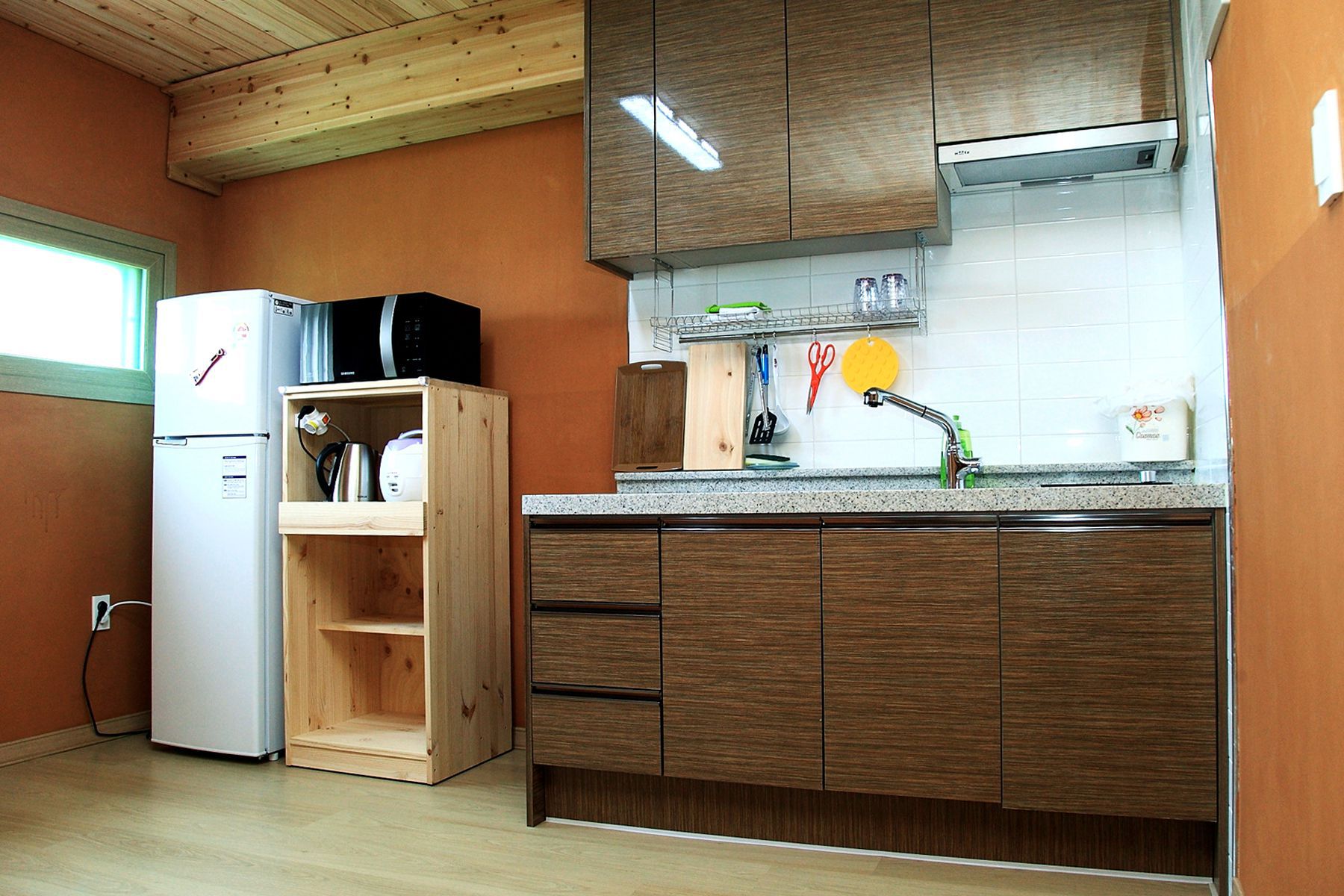 브라운톤의 깔끔한 주방은 편안한 느낌이 들어 좋습니다.