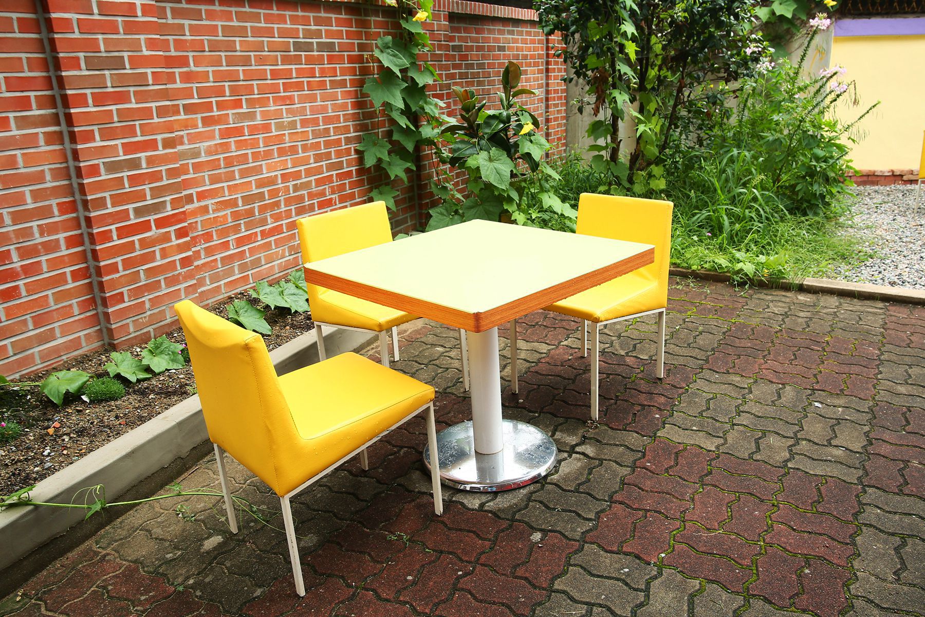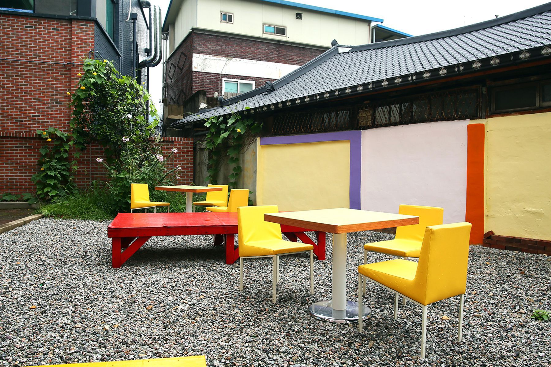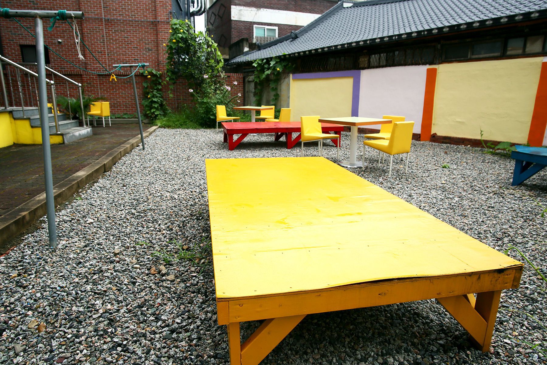애견 동반이 가능하고 예쁜꽃들과 쉴수 있는 평상과 테이블이 마련되어 있어 시골정취가 느껴지는 정감있는 마당이 인상적입니다.