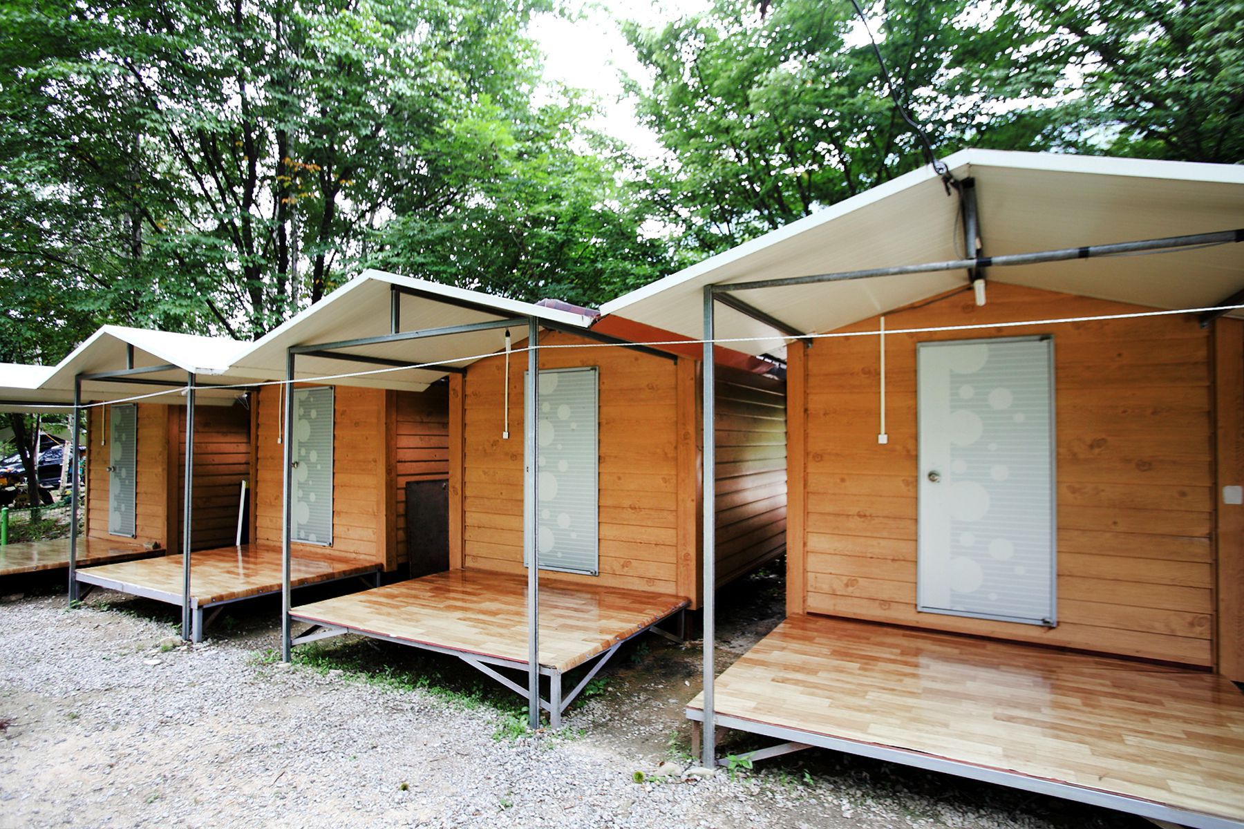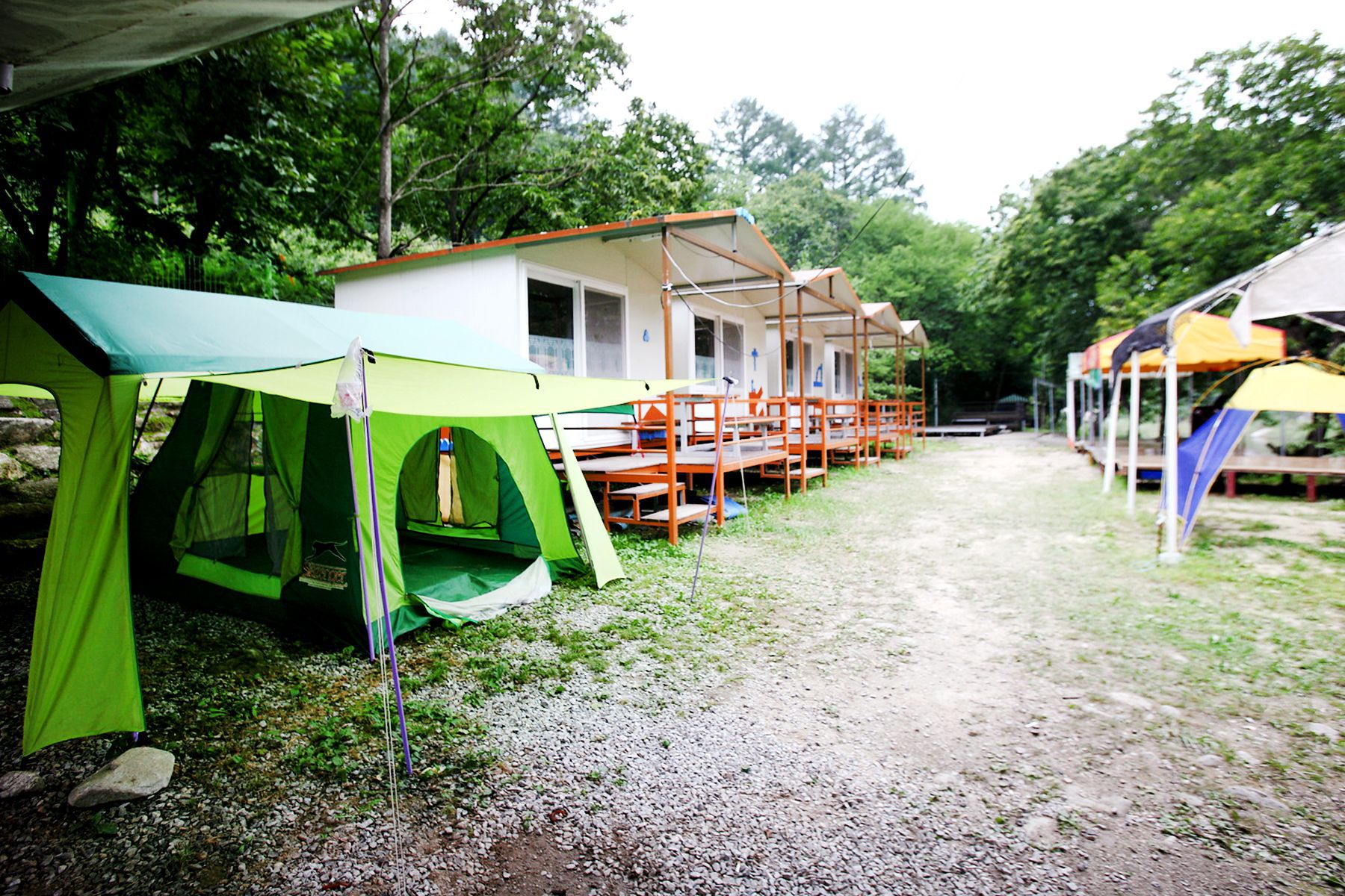 민박큰방,데크가 딸린 텐트,판넬방갈로가 깔끔한 시설을 갖추고 마련되어 있습니다.