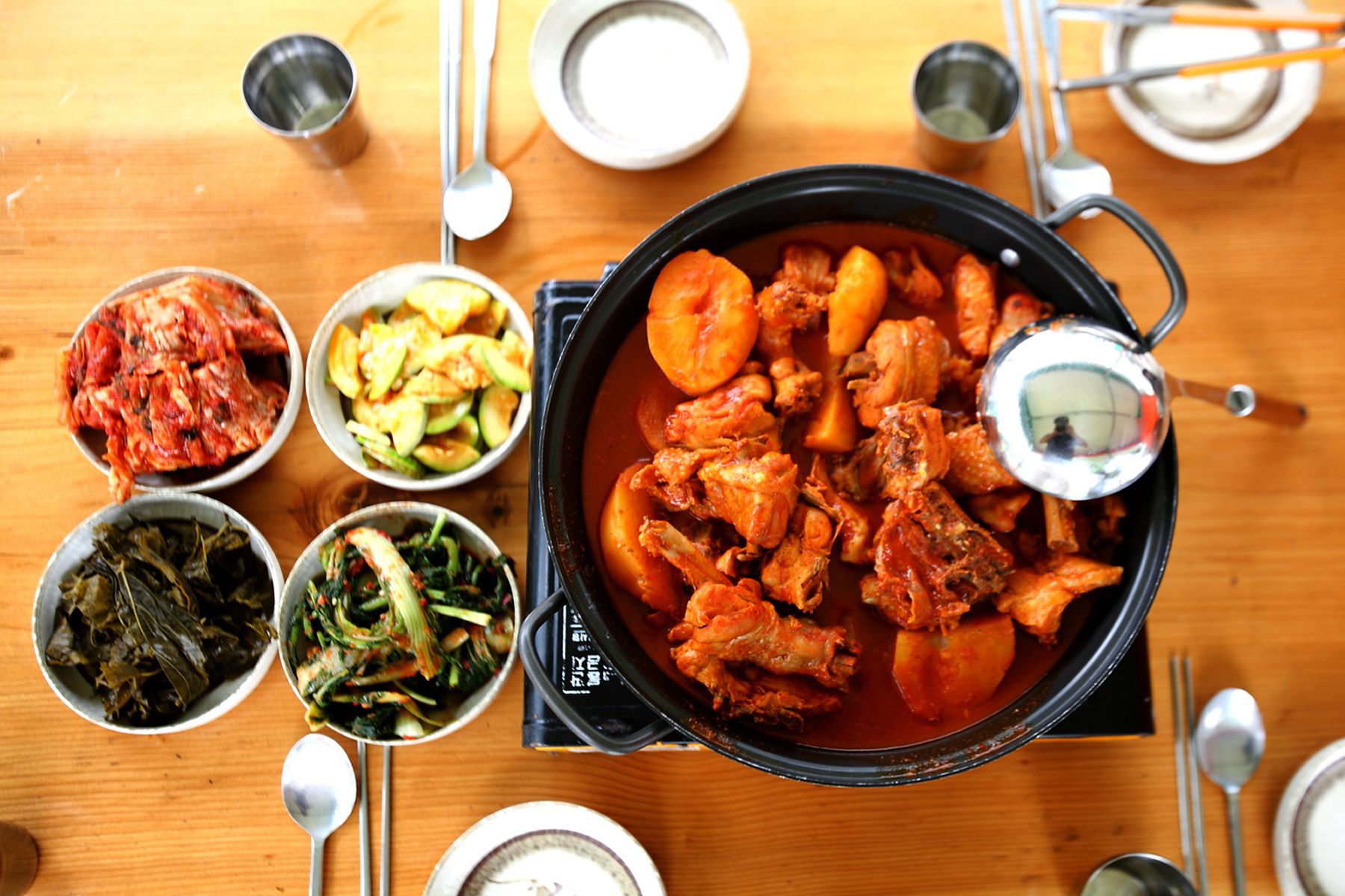 큼직하게 썰어진 감자와 칼칼한 국물이 예술인 닭볶음탕은 식욕을 자극하고