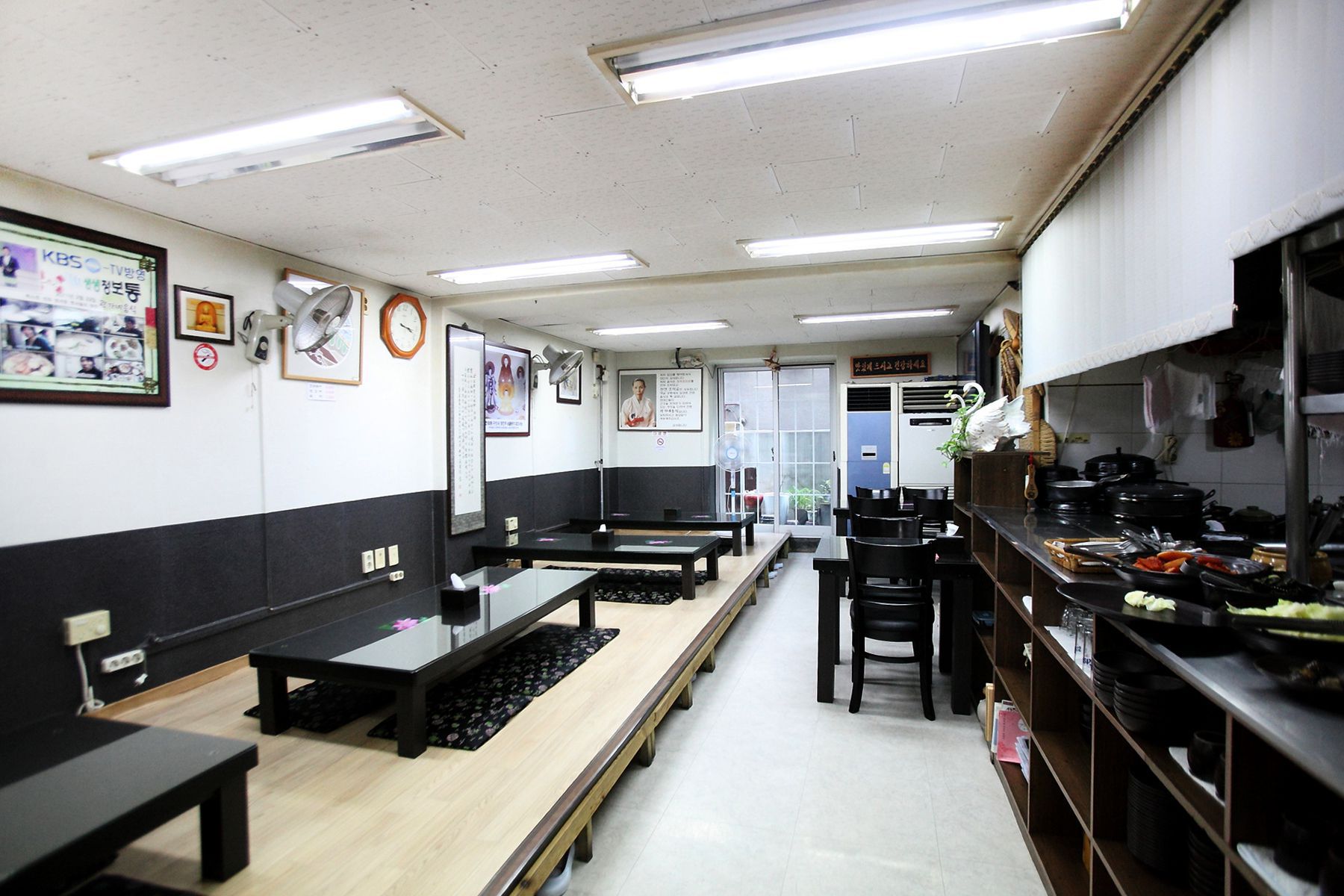 사찰 음식점답게 향토적인 분위기가 물씬 느끼는 인테리어및 블랙과 화이트의 조화가 잘 어울리는 깔끔한 식당이며