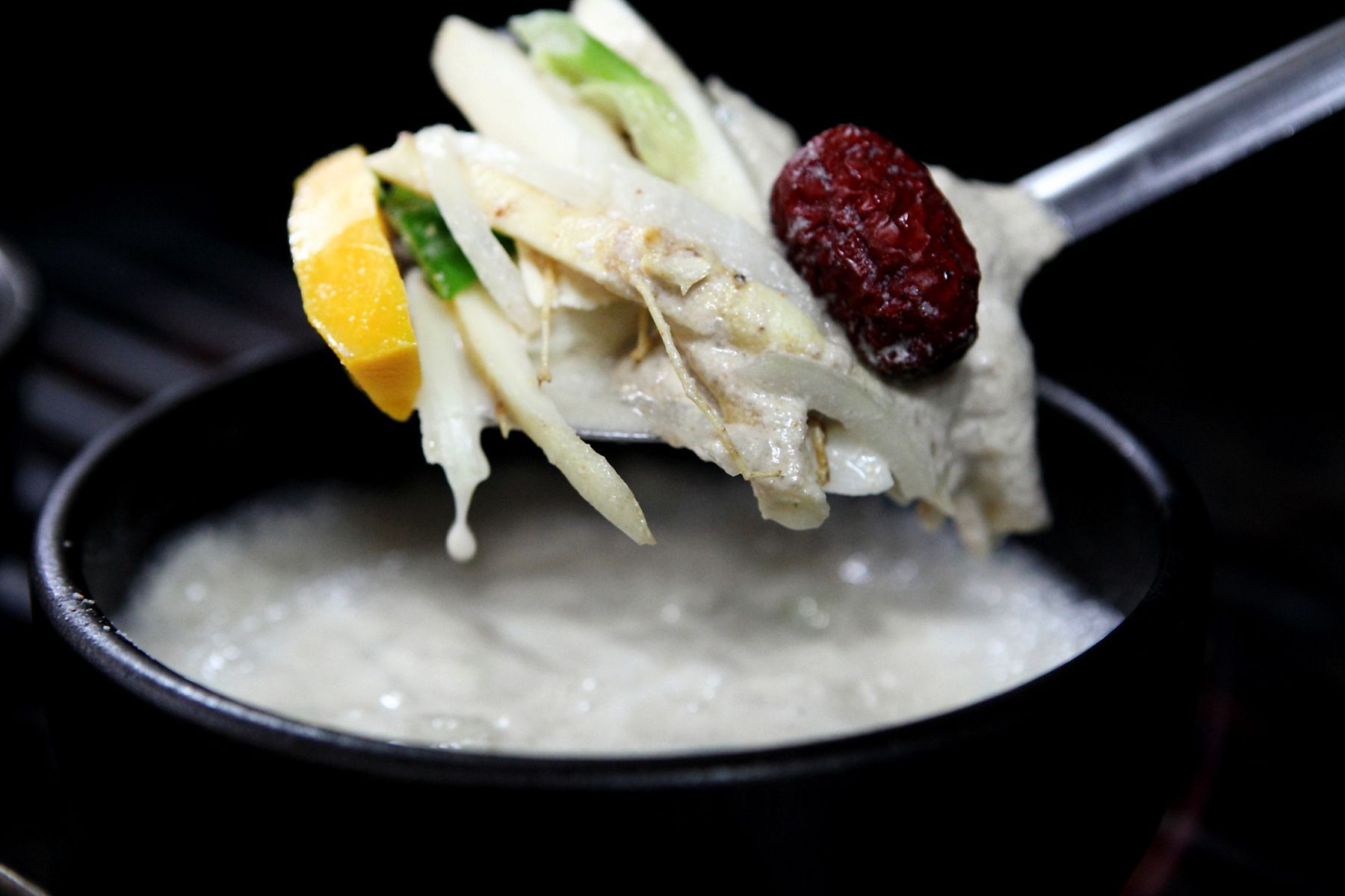 그중에서도 고소함과 건강한 맛을 가득 느낄 수 있는 인삼,더덕,영근,버섯,우엉이 각각 들어가 있는 견과류탕이 제일 인기있으면서 대표 메뉴이지요!