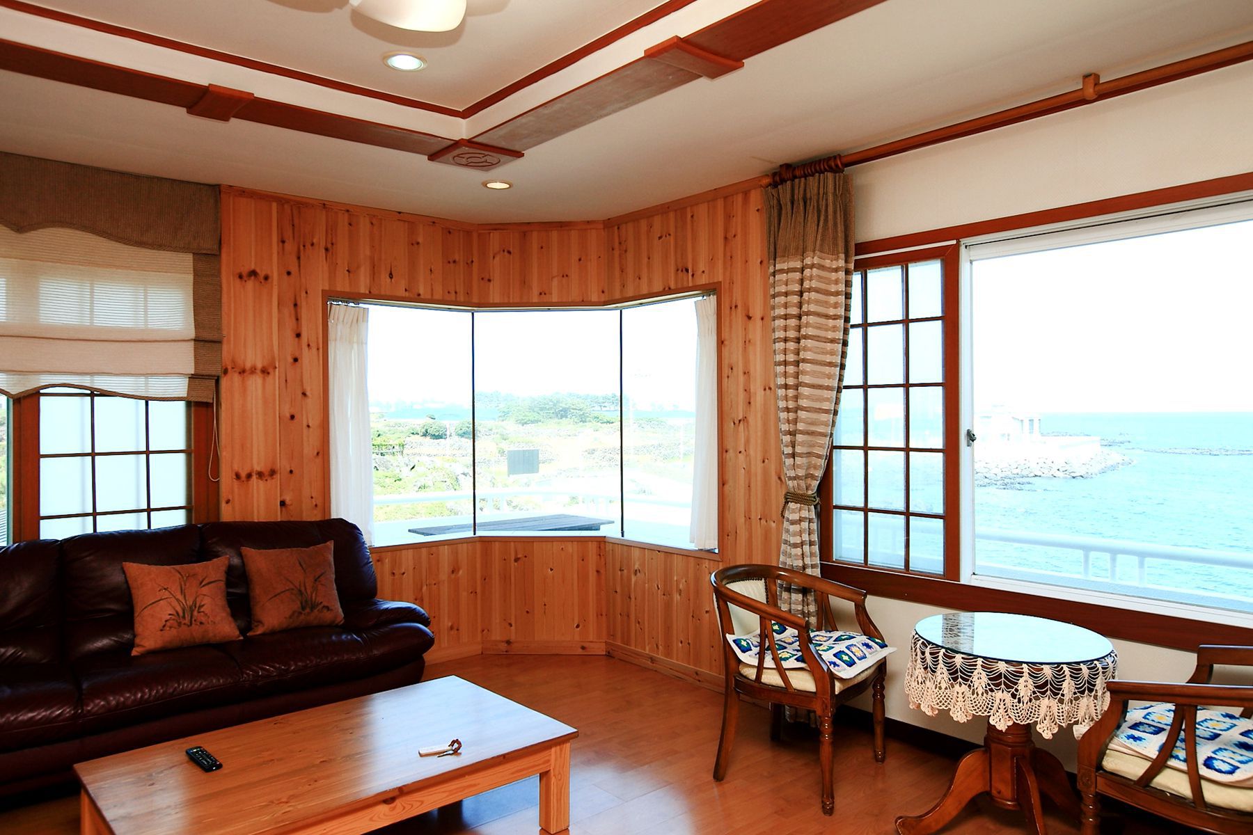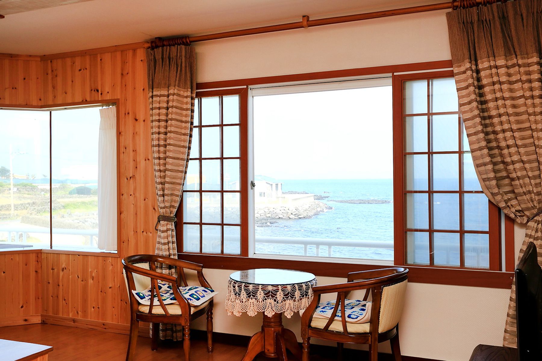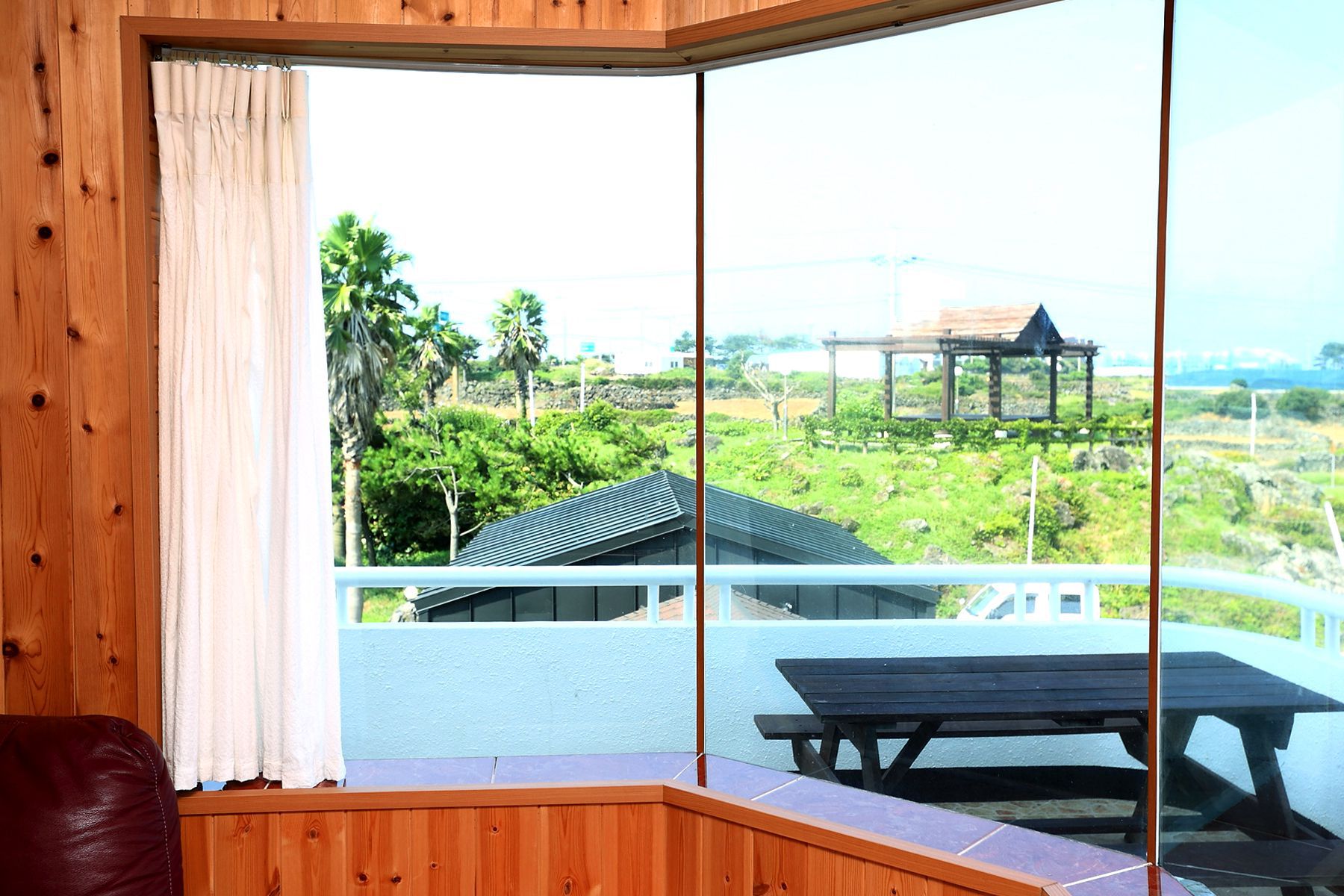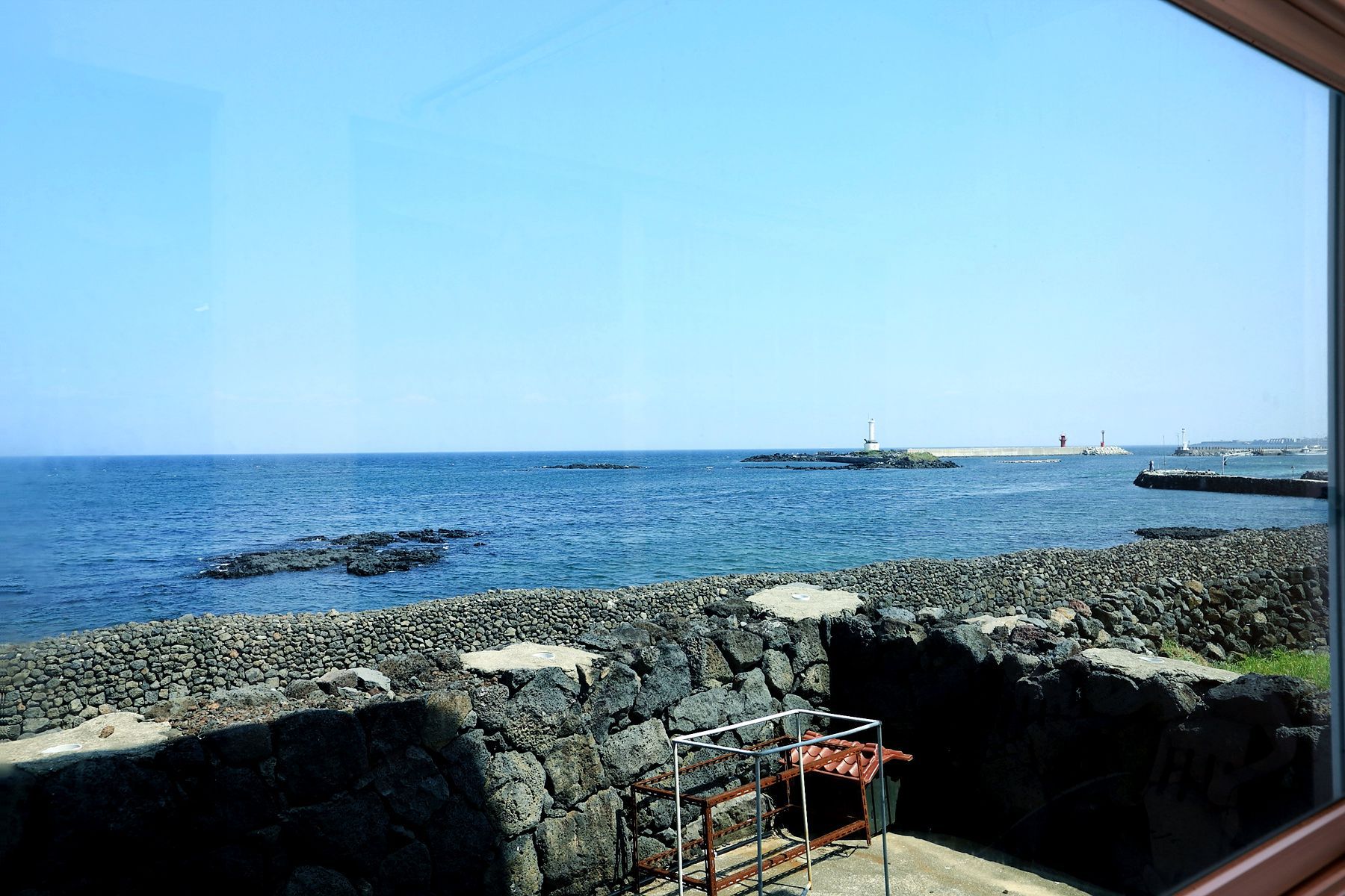 시원하게 창밖으로 내려다 보이는 아름다운 제주바다는
